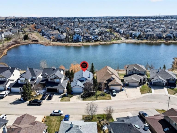 EXPERIENCE ELEVATED LAKESIDE LIVING in this IMPRESSIVE, CONTEMPORARY ESTATE just across from the water in beautiful Chestermere. Perfectly positioned on a sprawling 1/3 ACRE LOT with LAKE VIEWS, this home offers the ultimate blend of luxury, space, and lifestyle—paired with the everyday convenience of LAKE LIFE, close to all schools, and set on a QUIET, LOW-TRAFFIC STREET. A dramatic OPEN-TREAD, SWEEPING SPIRAL STAIRCASE makes a stunning first impression, showcasing intricate DETAIL that will truly leave you in awe. The GRAND TWO-STOREY GREAT ROOM features soaring vaulted ceilings, a catwalk overlook, and EXPANSIVE WINDOWS that fill the home with NATURAL LIGHT. A striking TWO-SIDED, FLOOR-TO-CEILING STONE FIREPLACE creates a warm, sophisticated focal point shared between the great room and a PRIVATE DEN with garden doors leading to the rear deck and beautifully landscaped yard. The FRONT DINING ROOM is perfectly designed for hosting LARGE GATHERINGS, while the Dining space in the Kitchen adds both style and functionality. Rich HARDWOOD FLOORING with CUSTOM TILE INLAYS and UPDATED KITCHEN CABINETRY elevate the space, while the chef-inspired kitchen features TWO WALL OVENS, a GAS COOKTOP, premium appliances, and a SHOWSTOPPING CUSTOM HOOD FAN with incredible detail. The expansive 10’8” x 7’ BUTLER’S PANTRY ensures effortless entertaining. You’ll also appreciate the abundance of practical space with a generous LAUNDRY AREA, MUDROOM, and additional storage. Upstairs, ALL 4 BEDROOMS are generously sized—ideal for growing families—and the thoughtfully designed JACK & JILL BATHROOM offers both convenience and function. The PRIMARY RETREAT is a true escape, featuring a spacious WALK-IN CLOSET and a LUXURIOUS 5-PIECE ENSUITE. View of the lake and West Sun make the room perfect for a Restful Sleep! The Bonus Room is spacious and provides an extra space to unwind! The FULLY DEVELOPED LOWER LEVEL is designed for ENTERTAINING, complete with a PRIVATE MEDIA AREA and BAR, a SPA-INSPIRED BATHROOM with WALK-IN SHOWER, SEPARATE SOAKER TUB, and DUAL VANITIES, along with a FIFTH BEDROOM Separate Gym Area plus STORAGE/MECHANICAL SPACE. Step outside into your own BACKYARD OASIS—meticulously landscaped with THREE PONDS, mature trees, shrubs, and perennials, all maintained by a 5-ZONE UNDERGROUND IRRIGATION SYSTEM. Enjoy outdoor living on the FULL-WIDTH REAR DECK and gather around the GAS FIREPIT in a setting designed for relaxation and connection. Enjoy FRONT LAKE VIEWS and AFTERNOON SUN from your COVERED FRONT DECK—an ideal space to unwind and take in the beauty of the surrounding community. Additional highlights include TWO AIR CONDITIONING UNITS, a FULLY FENCED YARD with DOG RUN, and an OVERSIZED TRIPLE GARAGE designed with space for STORAGE and CAR LIFTS. The MASSIVE PAVED DRIVEWAY extends beyond the home, offering ample parking and dedicated RV SPACE.
