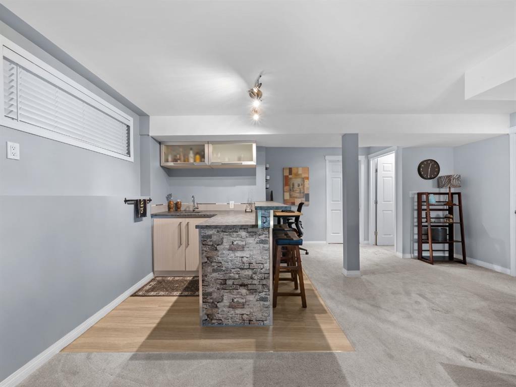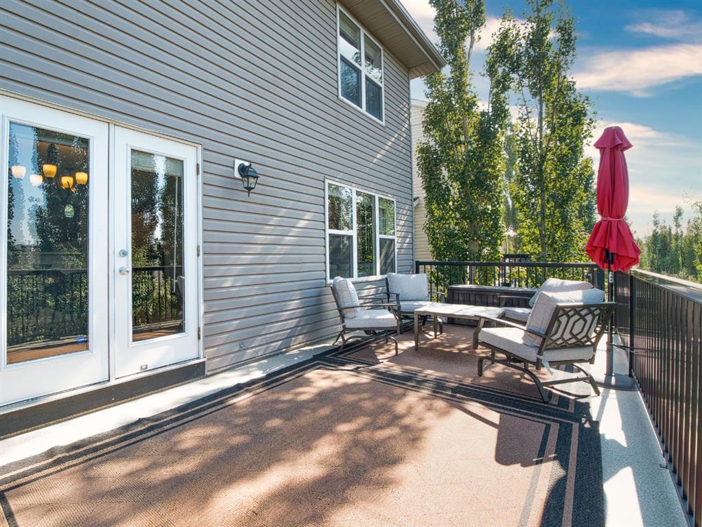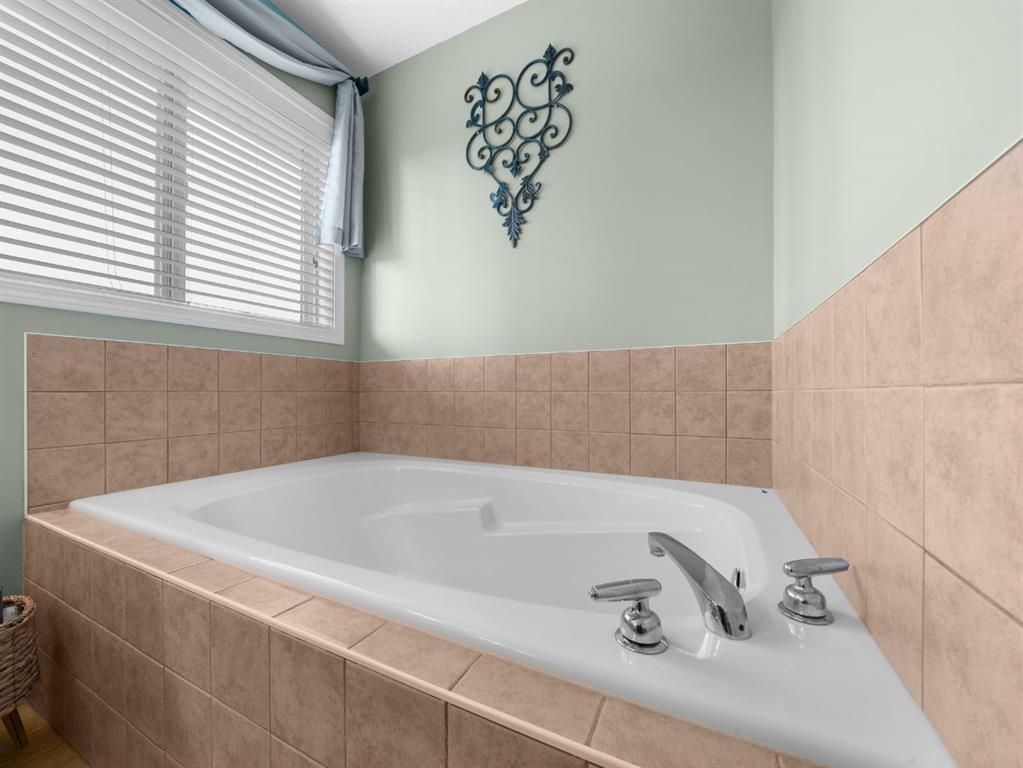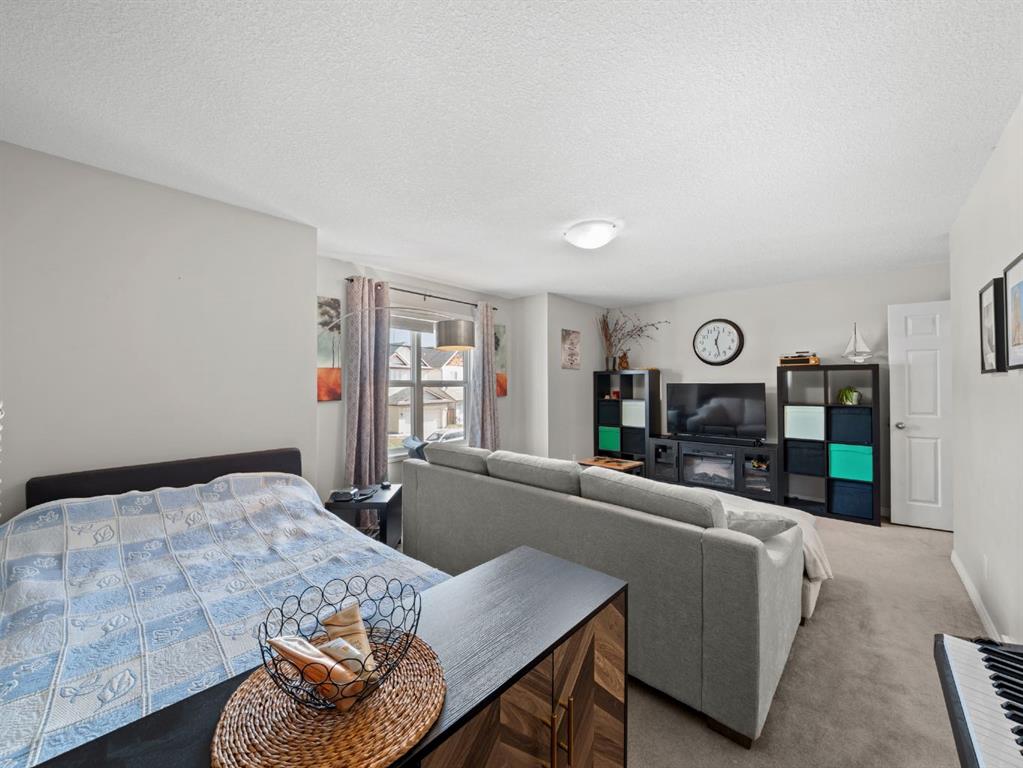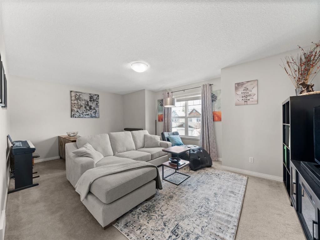 Move your family in before Christmas and enjoy the holidays in your new home. This well-maintained two-storey offers over 2,080 sq.ft. above grade with a fully developed walk-out basement, set on a quiet street in the Creekside area of Evanston. Families will appreciate being a very short walk to Kenneth D. Taylor School, with three additional schools located within the community, making daily routines easy and convenient. The main floor features a practical layout with a front office, refinished hardwood floors that continue up the staircase and throughout the upper level, and the removal of popcorn ceilings in favour of a modern textured finish. The kitchen offers quartz counters, new tile backsplash, stainless steel appliances and a walk-through pantry connecting to the laundry and garage entry, while the living room centers around an upgraded gas fireplace and the dining area opens to an oversized Duradek-covered deck with a gas line and BBQ included. Upstairs are three bedrooms plus a spacious enclosed bonus room that works well as a family or media room, or could easily serve as a fourth bedroom. The primary suite is generous in size and features a walk-in closet and an updated ensuite with dual sinks, a soaker tub and a separate shower. The walk-out basement provides a comfortable media and entertainment space with built-in TV, speakers, gas fireplace and wet bar, leading to a covered patio with privacy shades and a landscaped yard with grass and trees. Recent updates include a new roof (2024) and hot water tank (2022). Located steps from parks, pathways and nearby shopping at Creekside and Evanston Towne Centre, with quick access to Stoney Trail, Shaganappi and major routes, this home combines space, function and family convenience.