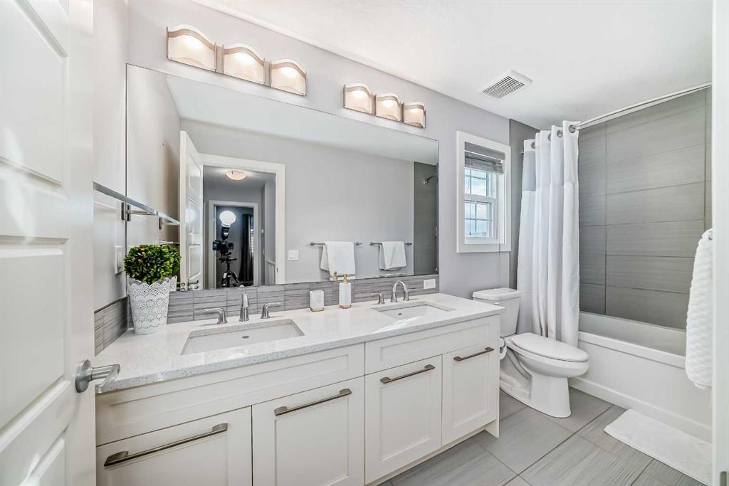 Stunning Calbridge Show Home – the Daytona 2 model with a triple tandem heated garage, located in the highly sought-after and family-friendly community of Legacy. This exceptional 2-storey home stands out with its thoughtful design, premium finishes, and over 3,000 sq. ft. of beautifully developed living space, including the fully finished basement with 9-ft ceilings. The main floor welcomes you with a spacious foyer leading to a bright open-concept layout filled with natural light. The living room features large windows and a sleek gas fireplace with stainless surround, creating a warm and elegant space for relaxing or entertaining. A main floor den/office provides the perfect setup for those working from home. The entire main level is enhanced with gorgeous wide-plank engineered flooring and upgraded lighting throughout. The chef-inspired kitchen is sure to impress with its large quartz island, ceiling-height custom cabinetry, stainless steel appliance package, quartz countertops, and a convenient walk-through pantry. The adjoining dining area is perfect for family gatherings, while the mudroom helps keep everything organized. A 2-piece powder room completes the main level. Upstairs, you’ll find a grand bonus room that’s ideal for movie nights or a play area. This level includes four generously sized bedrooms, a 5-piece main bathroom with quartz double vanity, and a convenient upper-level laundry room. The primary suite is a true retreat, featuring a large walk-in closet with built-in shelving and a luxurious 5-piece ensuite complete with an extended quartz vanity, soaker tub, and separate shower. The fully developed basement is an entertainer’s dream, offering a spacious family room with a full wet bar, granite countertops, built-in dishwasher, bar fridge, and matching cabinetry. There’s also a custom wall bed for guests, a 3-piece bathroom, and oversized windows that flood the space with natural light. Step outside to a maintenance-free composite deck with tempered glass railing overlooking the fully fenced backyard. The stamped concrete patio provides additional space for outdoor entertaining, and the paved back lane offers privacy and easy access. Additional features include central air conditioning, a heated triple tandem garage with overhead gas heater, water softener, and a 50-gallon hot water tank. Beautiful curb appeal is showcased with Hardie board siding and stone accents. This exceptional home is ideally located close to all amenities—schools, parks, playgrounds, major shopping centers, and just minutes to Stoney Trail for easy commuting. A stunning and fully finished Calbridge show home that truly has it all—luxury, comfort, and location. Don’t miss your opportunity to make this beautiful Legacy home yours! Book your private showing today!