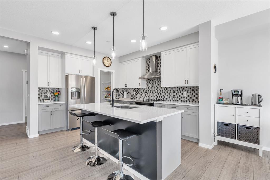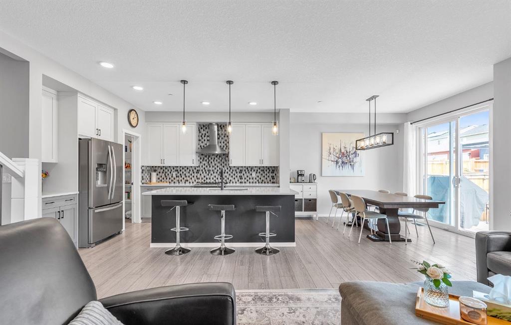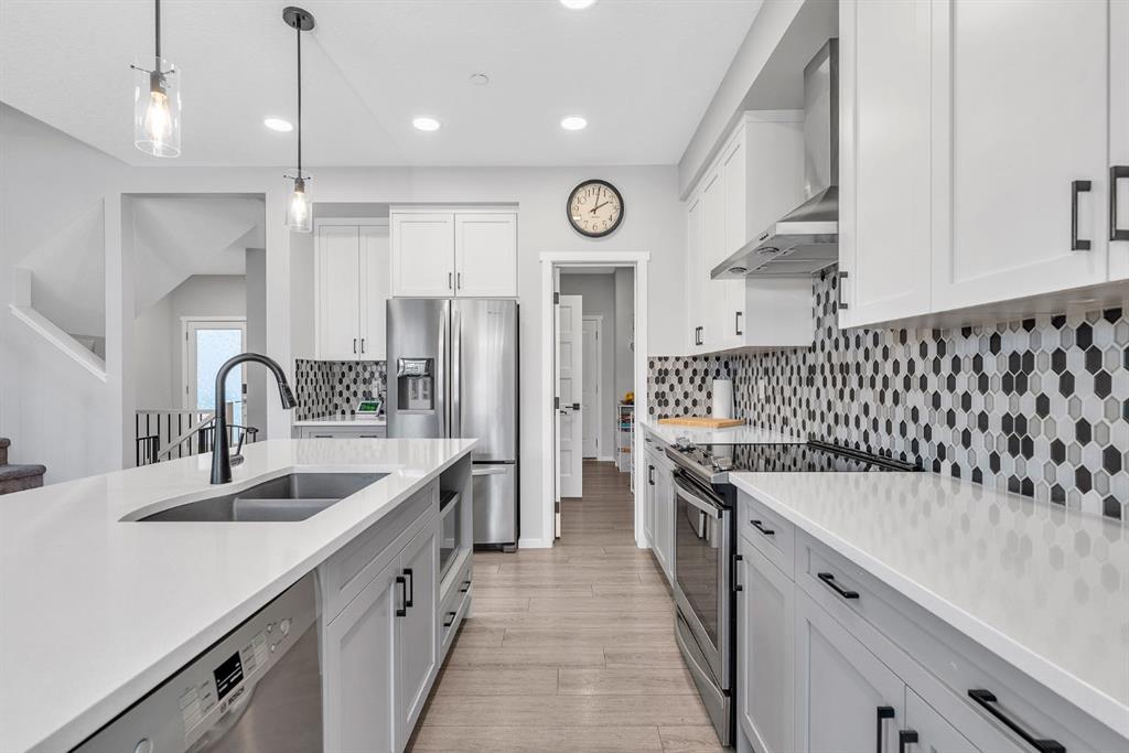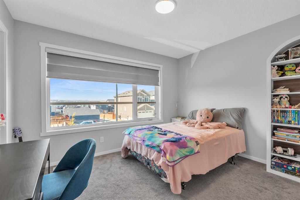 Located in the vibrant, growing community of Livingston, just steps from Livingston Park and within walking distance of numerous amenities is this immaculately kept 4 bedroom, 3.5 bathroom, modern 2 storey home with bright, open floor plan, double attached garage and developed basement!! Entering the home, you’re greeted into a spacious foyer. The functional main floor layout offers a discrete powder room set apart from the main living areas, a large mud room off the garage with a walk-through pantry that leads into the kitchen, and an open-concept living, kitchen and dining area overlooking the back yard. The kitchen is the heart of the home, featuring a large island with room for seating, stainless steel appliances, stone counters and ample storage with soft-close cabinets and drawers. The living room is anchored by a cozy gas fireplace and offers large windows for an abundance of natural light. Upstairs, you’ll find a large primary bedroom with spacious ensuite and walk-in closet. The ensuite features dual sinks, a soaker tub and separate shower, and a private water closet. Down the hall is a versatile den/office space, two additional bedrooms, a full bathroom and convenient upper laundry room. You’ll also appreciate the open bonus room on this floor. The basement is developed with a family room and large bedroom with walk-in closet and private ensuite. Enjoy the rear deck, complete with BBQ gas line, and the fully-fenced yard for the kids and pets! With central air conditioning to keep you comfortable on hot summer days and a complete fire suppression system for added peace of mind, this is the perfect family home.