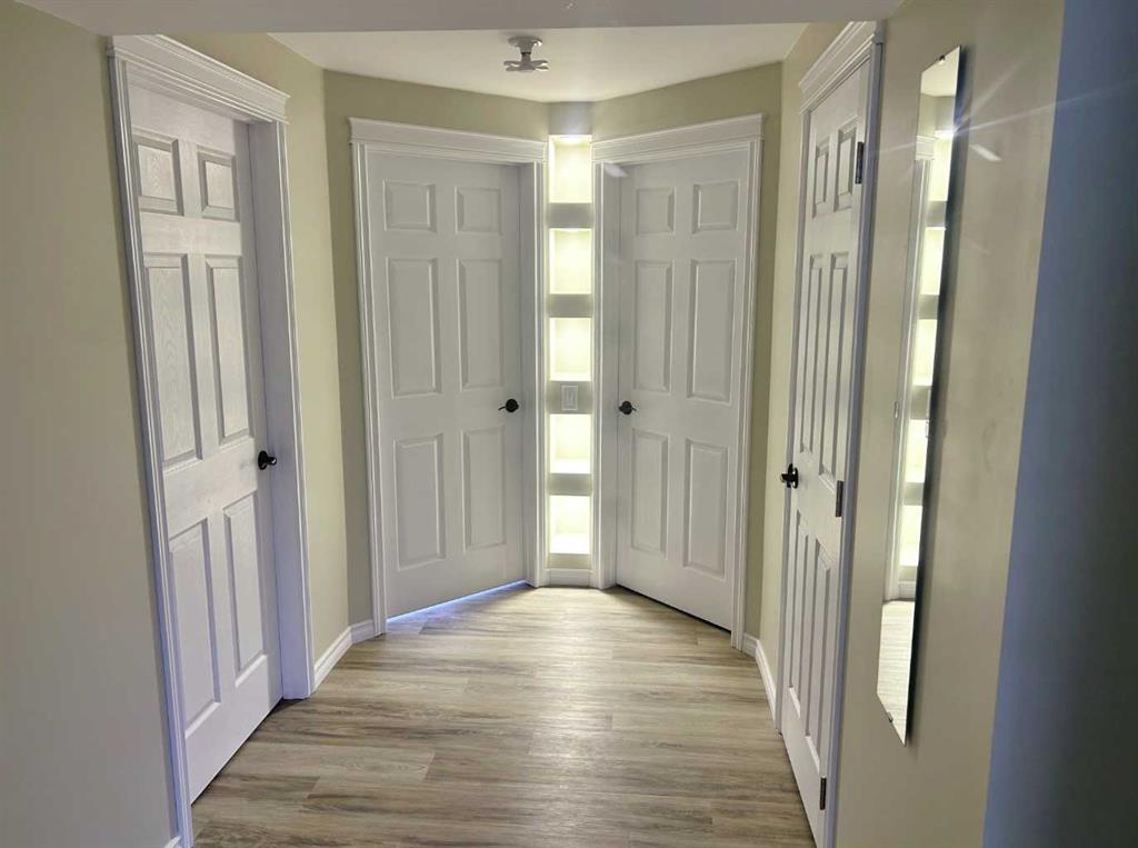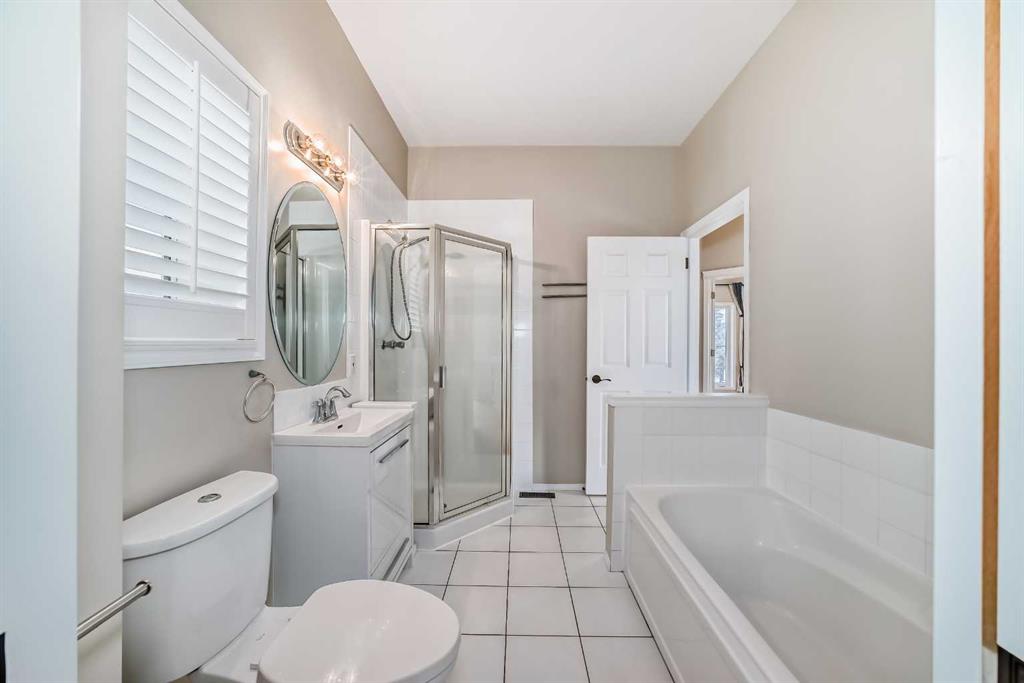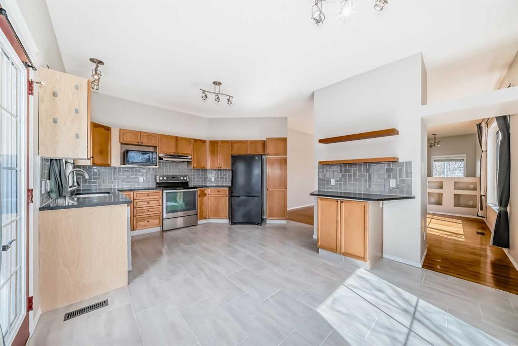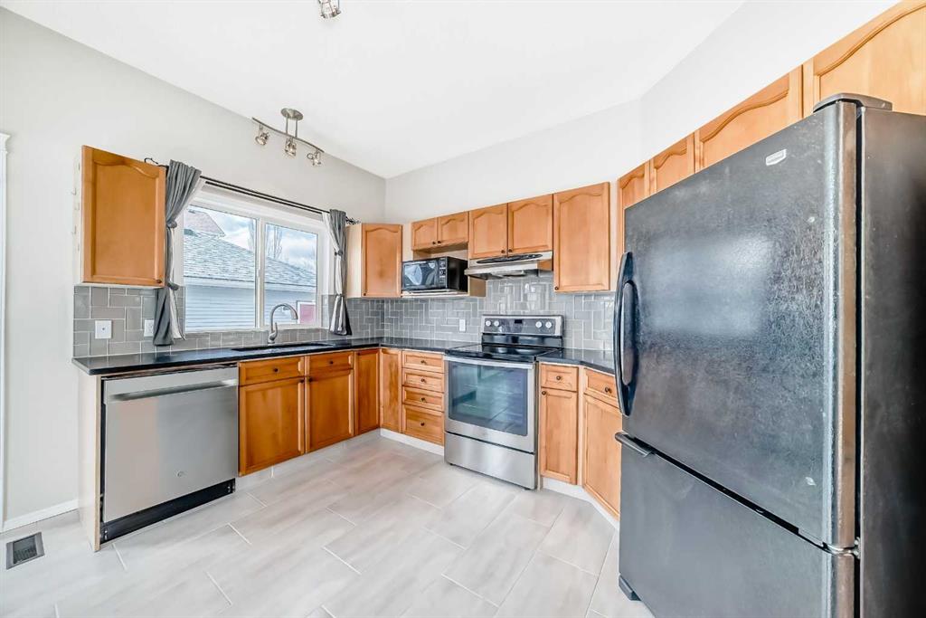 This large bi-level home is fully finished with 6 bedrooms, 3 bathrooms and nearly 2400 sq ft of developed space! Step into an open plan main floor with soaring 9.5 ft ceilings, newer light fixtures, and large windows bringing in tons of natural light. A generous living room with a wood fireplace, hardwood floor, and 6 large powered pocket shelves. The welcoming kitchen has maple cabinetry, quartz counters, newer stainless steel stove and dishwasher, tile floor, glass tile backsplash, and a bright dining area! A very spacious primary suite has a walk-in closet, California shutters, and cheater access to the 4-pce bathroom with a corner shower and soaker tub. A second bedroom on the main floor plus a 3rd bedroom/office with French doors completes the main floor.