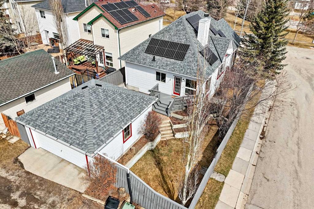 So many great updates and modern upgrades including new roof in 2020, R-60 attic insulation, a 4kW solar array to help offset the power bill, new hardware throughout, and freshly painted! Outside, you have a freshly painted deck and fence in the private SW-facing back yard. Step down to a gorgeous circular stone patio, raised garden beds, mature trees and perennials. The oversized 22 x 20 ft detached garage has a 50 amp panel, 240V plug in the garage for electric vehicle or workshop, plus back alley access with potential to add RV parking and a gate.