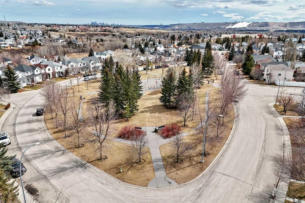 Rare opportunity: Beautiful, EV ready, walkable, optimally located, energy efficient property, with illegal suite. The highly desirable community of Tuscany is an incredible location with quick access to the TransCanada Highway, Stoney Trail, Crowchild Trail, and Rocky Mountains. Only 15 min walk to the LRT Station with 20-30 minute train ride directly to University, Stadium, SAIT, or downtown. Just a 5 min walk to nearby schools, shops, Tuscany Club, and the ravine pathways that wind through the community! This well-maintained home is on a quiet street with a front porch view of the greenspace and playground across the street. Wildlife is frequently in the front yard. The large 4510 sq ft corner lot has a SW-facing backyard plus beautiful curb appeal and a permitted newer composite wrap-around front porch with bespoke metal railing.