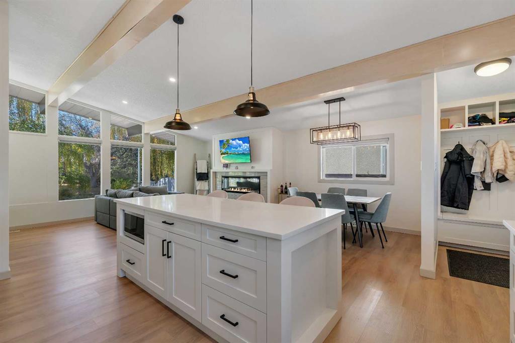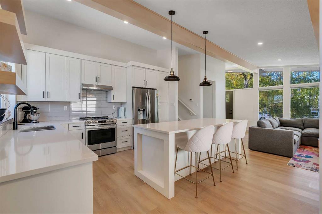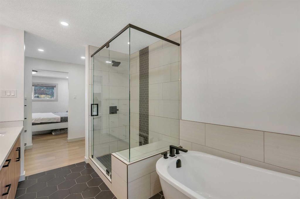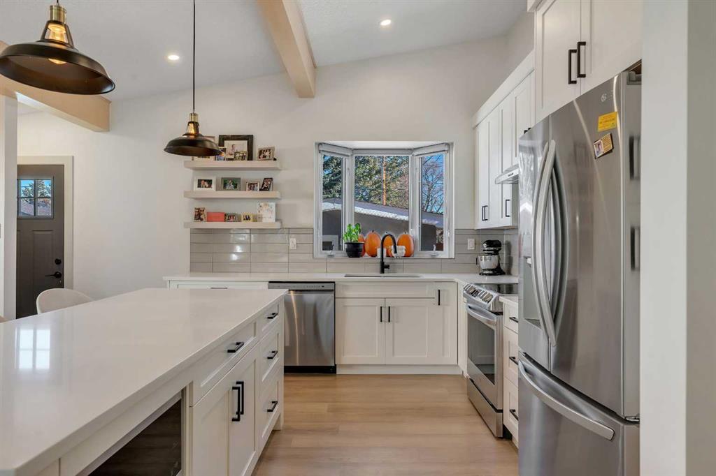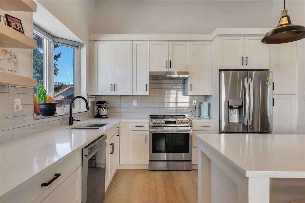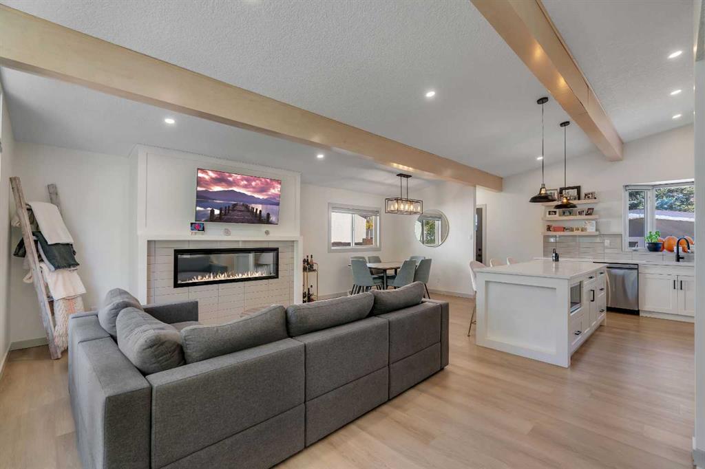Welcome to 9816 Austin Road SE. Tucked away on a quiet, tree-lined street, this extensively upgraded four-bedroom, three-bathroom home combines modern luxury with timeless design. Every detail has been thoughtfully planned and professionally renovated—nothing was overlooked. From the moment you arrive, the stunning low-maintenance front garden and freshly stuccoed exterior set the tone for what’s inside. Step through the front door and you’re greeted by an impressive open-concept living space featuring vaulted ceilings, exposed beams, and a custom fireplace that anchors the room in warmth and style. The chef-inspired kitchen is equipped with high-end finishes, premium cabinetry, and an elegant flow perfect for both entertaining and everyday living. Upstairs, retreat to your luxurious primary suite with a walk-through closet leading to a spa-inspired five-piece ensuite—complete with soaking tub, double vanities, and top-tier fixtures. A second spacious bedroom and full three-piece bathroom complete the upper level. The lower level continues to impress with two additional bedrooms, a modern three-piece bathroom, laundry area, and a large recreation room ideal for movie nights or a home gym. No detail was spared in this transformation. Extensive front landscaping, a new roof (2023), and prior renovations including newer windows, furnace, hot water tank, kitchen, bathrooms, flooring, and that incredible ensuite—this home truly has it all. If you’re looking for a move-in-ready home in one of Calgary’s most desirable, family-friendly neighborhoods, 9816 Austin Road SE delivers craftsmanship, comfort, and character in every square foot.