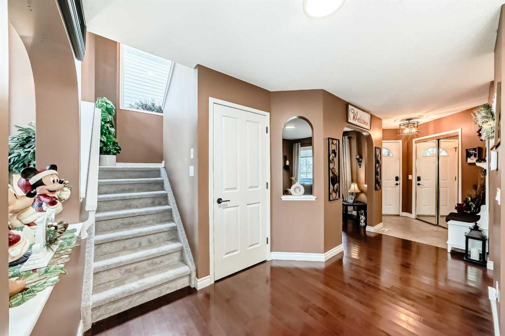 Welcome to this spacious & elegant home in the sought-after community of Hidden Valley. Schools, parks and walking paths make this a family friendly neighborhood, yet it has quick & convenient access to Stony Trail, leading to ‘everywhere’ you need to go! Over the past few years, this home has undergone extensive renovations including all new kitchen (quartz counters with gleaming white cabinets), new hardware, baseboard and trim, new microwave/hood fan & dishwasher, new carpet upstairs, new light fixtures, brand new, motorized zebra blinds in Living Room and Bonus Room/Office (over $3,000 value for blinds); as well as brand new shingles. The main floor includes a front of the house den/sitting room/dining room, which then leads to the open concept kitchen, dining room & living room. This ‘heart of the home’ area boasts the large & bright kitchen with island which is accentuated by soaring vaulted ceilings, floor to ceiling windows flooding this area of the home with natural light, gas fireplace for cold winter nights, and deck leading to large back yard where you’ll enjoy summer BBQs. Laundry & powder room complete the main floor. Upstairs you will find the large primary bedroom with walk-in closet and 4 piece ensuite. Another hilite of this home is the upstairs bonus room, perfect for office space, home-work room or hang out space. Two more bedrooms & a 4-piece bathroom complete the upper floor. Downstairs contains a HUGE open family room, which can be partitioned for various uses, a 4th room which can be used for office/craft room (or enlarge the window for a 4th bedroom). Double detached garage and spacious back yard make this the ideal family home in a wonderful community. Book your private viewing today!