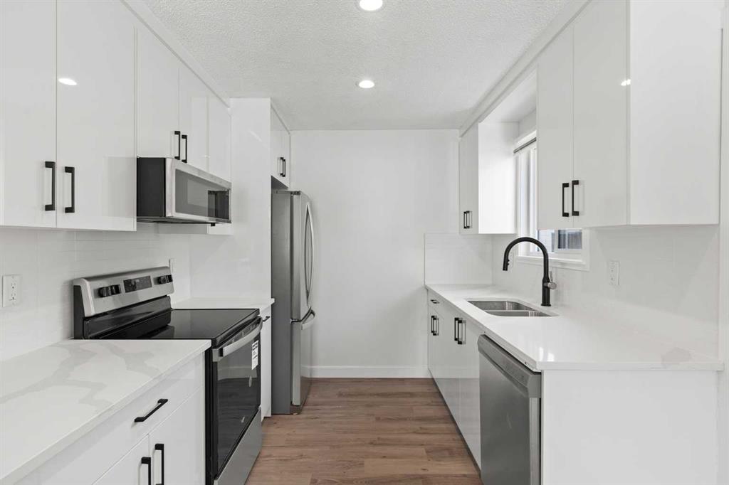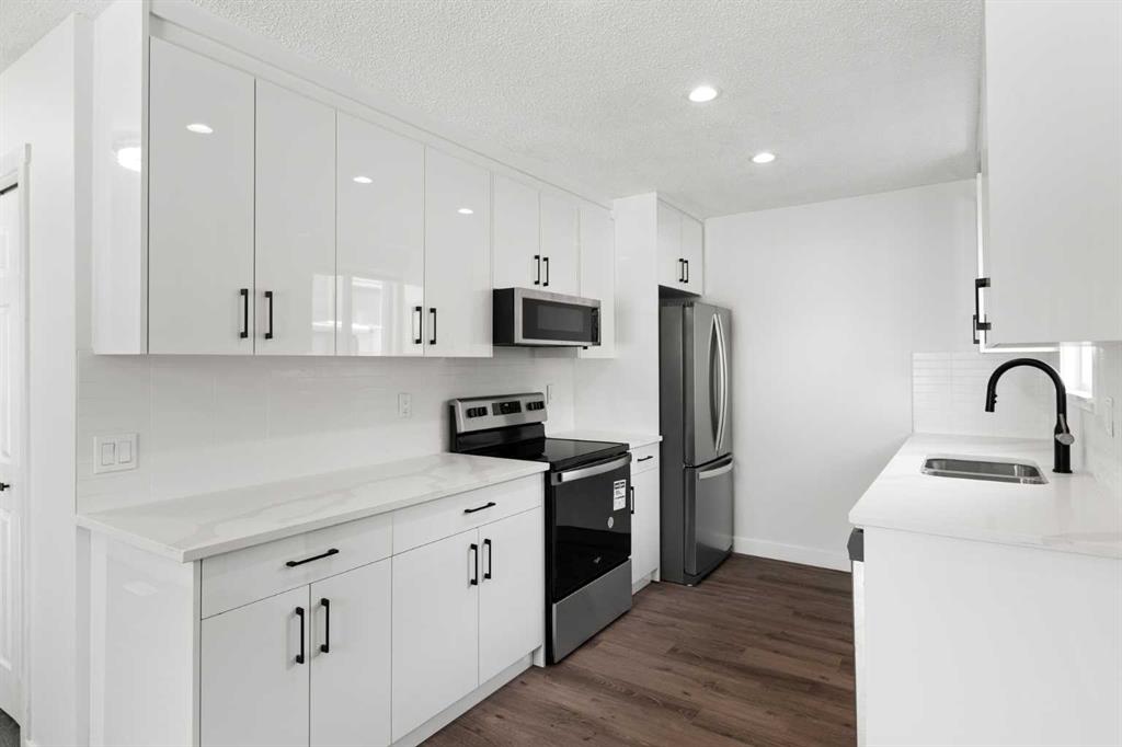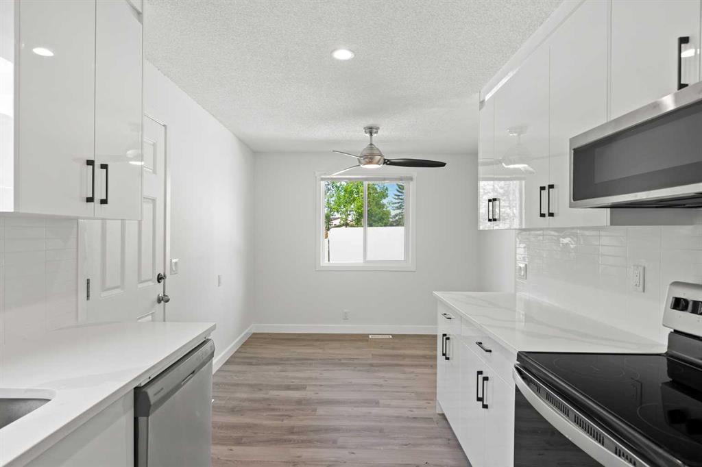 Renovated Bungalow Facing a Park – BRAND NEW Detached Double Garage Included. Location, lifestyle, and value come together in this wonderfully RENOVATED 4-bedroom, 2-bathroom bungalow, ideally located in the heart of Abbeydale – directly across from a little PARK & PLAYGROUND & tucked into a quiet, family-friendly street. Whether you’re searching for your first home or a move-up property with room to grow, this thoughtfully maintained home checks all the boxes. Sitting on a generous lot with a sunlit Northeast front and Southwest back exposure, this property welcomes you with CHARMING curb appeal, a tidy yard, and front VIEWS of the open park – providing a daily dose of nature right outside your door. Step inside to discover a BRIGHT & beautifully designed main floor, where recent renovations & quality updates create a warm and STYLISH living environment. Luxury wide-plank vinyl flooring flows seamlessly throughout main living and dining area, setting the stage for easy family living and effortless entertaining. Large windows flood the space with natural light, giving the home an airy, inviting feel from the moment you arrive. At the heart of the home is a fully renovated, MODERN kitchen that truly delivers on both form and function. Crisp white cabinetry, premium quartz countertops, a classic subway tile backsplash, and quality stainless steel appliances make this kitchen a DREAM for home chefs and design lovers alike. Whether you’re whipping up weeknight dinners or hosting holiday meals, this space is equipped to handle it all with ease and ELEGANCE. The main level offers three generously sized bedrooms, including a comfortable primary retreat with a large closet & window overlooking the backyard. Each bedroom has been well maintained, offering flexibility for families, guests, or a dedicated home office. The main bathroom has been COMPLETELY transformed into a spa-like retreat, featuring stunning designer tile, quartz countertops, a custom vanity with an undermount sink, and stylish plumbing fixtures – all thoughtfully chosen to ELEVATE your daily routines. Downstairs, the fully finished basement expands your living space with a massive family/recreation room, ideal for movie nights, games, formal dining or relaxing with loved ones. A spacious fourth bedroom, updated second bathroom, and dedicated laundry/storage/utility room add versatility & functionality to this lower level – perfect for multi-generational living. The backyard is fully landscaped and fenced, offering a QUIET and private retreat for play, gardening, or summer BBQs. A BRAND NEW Detached Double Garage & storage shed round out the property, ensuring convenience and plenty of space for all your lifestyle needs. Homes like this are RARELY available in such a PRIME LOCATION – just steps from parks, schools & everyday amenities, with quick access to 16th Avenue, Stoney Trail, and downtown Calgary. Don’t miss out – CALL TODAY for a PRIVATE TOUR!!