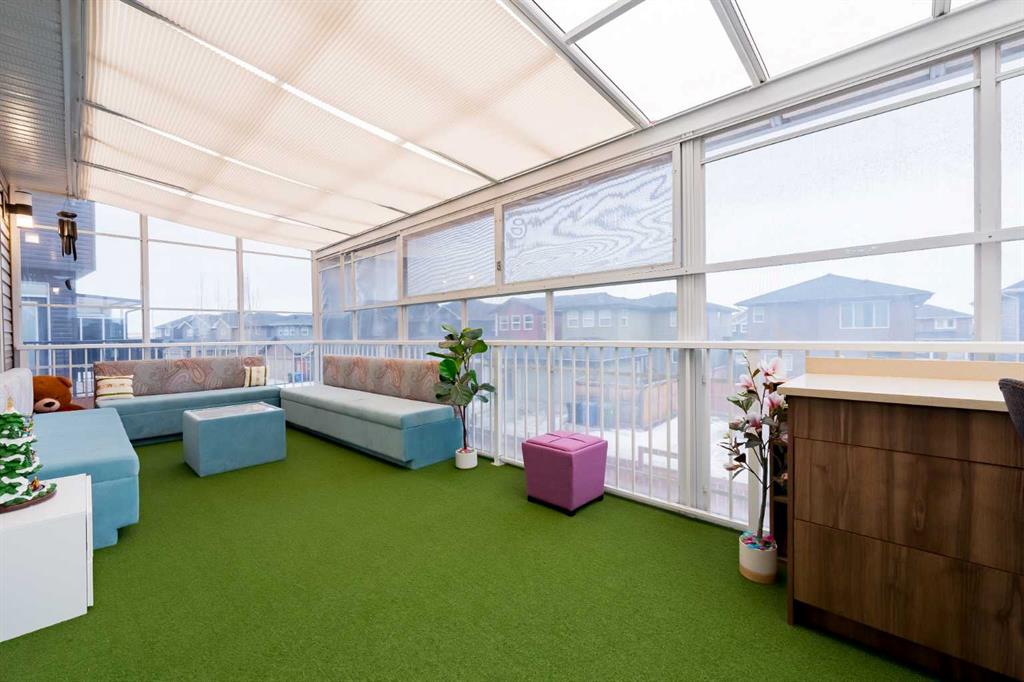 **Fully developed with a walkout basement, approximately 3,300 sq. ft. of total developed living space, two three-season sunrooms (approx. 450 sq. ft.), a 6.4 kW solar panel system (16 panels), a 200-amp electrical panel, epoxy flooring in the garage, and low-maintenance artificial turf in the backyard—features like these are rarely found at this price point**. Welcome to this beautifully upgraded home in the highly sought-after community of Evanston, situated on a traditional 35-ft-wide lot and offering approximately 3,300 sq. ft. of fully developed living space. The main floor features a private office/den, a spacious, sun-filled living area with large windows, a dining area with custom seating, and elegant high-end laminate flooring, complemented by 9-foot ceilings. The chef’s kitchen is designed to impress, featuring quartz countertops, under-cabinet lighting, ceiling-height cabinetry, and premium stainless-steel appliances, including a Bosch built-in oven and microwave. A walk-through pantry with durable titanium wire shelving adds everyday convenience. A convenient half bath (with potential to convert to a full bath) and a three-season sunroom just off the living room complete the main level. Upstairs, a large bonus room sits centrally, thoughtfully separating the primary bedroom from the two additional bedrooms. This bonus space includes custom seating—perfect for movie nights or family gatherings. The primary bedroom offers a walk-in closet, a luxurious 5-piece ensuite with dual sinks, a custom standing shower, and a soaker tub. Two additional well-sized bedrooms, an upper-floor laundry room, and a second full bathroom featuring dual sinks and a standing shower with a custom tile base complete the upper level. The fully developed walkout basement offers a wet bar, a four-piece bathroom, and a spacious recreation area ideal for a home theatre, gym, or playroom. A SONOS 7.1 home theatre speaker system and an electric fireplace add comfort and entertainment value. The walkout layout also provides excellent potential to convert the basement into a legal suite (subject to City approval). Located in the vibrant, family-friendly community of Evanston, this home offers easy access to Stoney Trail, top-rated public and Catholic schools (including a new middle school opening soon), parks, walking paths, and nearby shopping centres. Recent updates include: roof and siding (2024), new carpet (2025), and fresh interior paint (2025). A water purifier, water softener, and home theatre system are included in the sale. This home stands out not only for its luxury finishes but also for its energy-efficient upgrades. The 6.4 kW solar panel system (16 panels) significantly reduces electricity costs, offering long-term savings and protection against rising energy prices—an increasingly valuable feature for today’s discerning buyers. Don’t miss this exceptional opportunity—book your private showing today! Open House: Saturday, Jan 31 and Sunday, Feb 1, from 1:00 PM to 03:00 PM