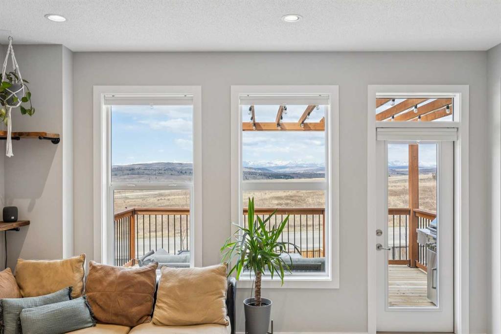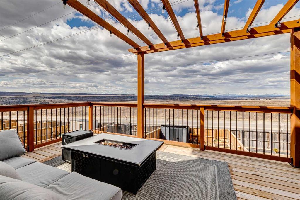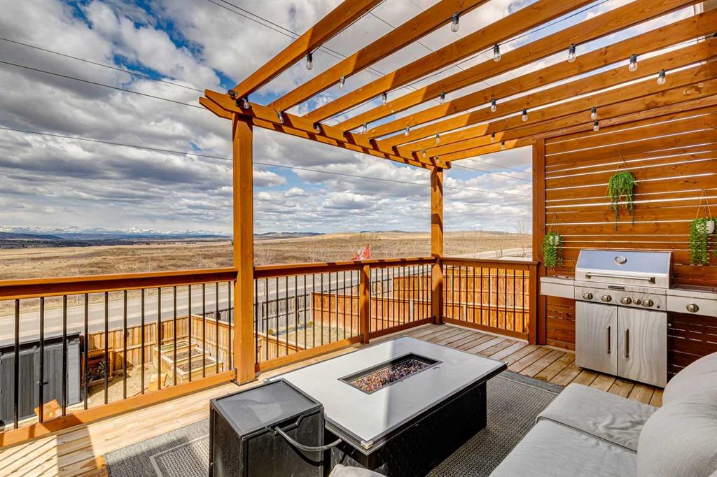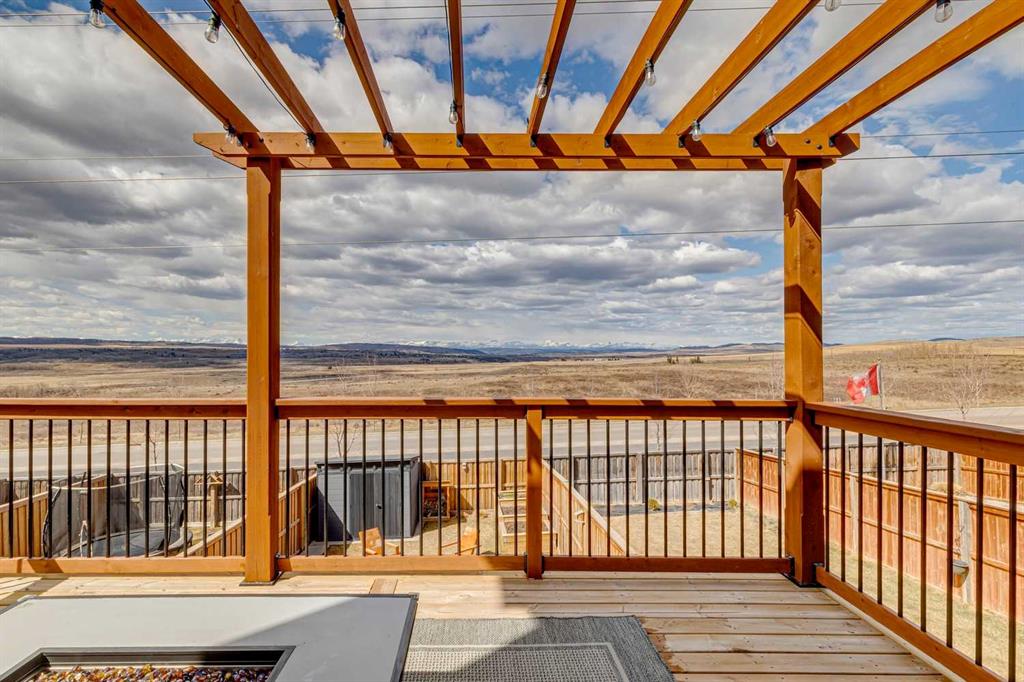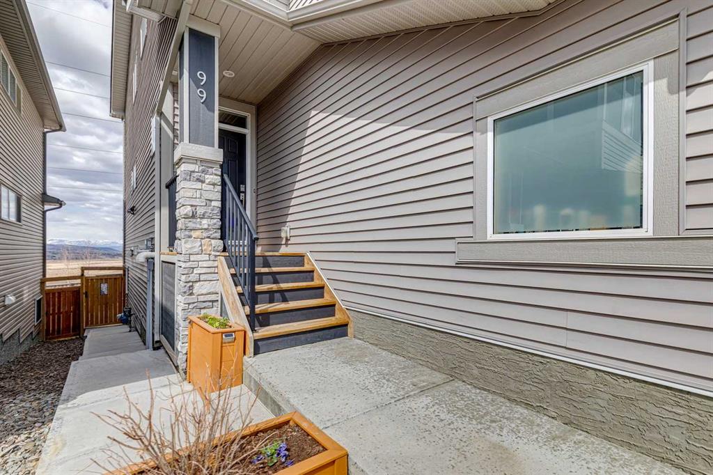 Here is a true rarity! Boasting some of the best views Southern Alberta has to offer from all three levels, and showing in like-new condition, this is the calming retreat every homeowner is looking for. Welcome to 99 Heritage Heights. Upon entry, this property immediately shows a cut above, with immaculate walls and luxury vinyl plank flooring flowing throughout the main floor living area. The incredible panoramic west exposure captures the mountain views this part of the world is known for. The kitchen features quartz countertops, gleaming white cabinetry, loads of storage space, and a dedicated pantry. The open-concept living and dining area extends onto the upper deck, expanding your main floor living and entertaining space. The upper deck has been thoughtfully expanded to approximately 18′ x 12′ and is structurally enhanced with helical piles, A 12′ x 12′ pergola with included LED string lighting creates the perfect setting for evening relaxation while taking in the sweeping mountain views. Upstairs, the primary suite (more mountain views) offers a walk-in closet and private ensuite bath. Two additional generously sized bedrooms, a 4-piece bath, and a dedicated laundry room complete the upper level. The finished walkout basement has been professionally updated and was previously operated as a very active Airbnb. Designer features are evident in the impressive bathroom, now further elevated with a premium Riobel thermostatic shower system with rain shower, elegant marble mosaic and porcelain tile work, and a NuHeat in-floor heating system with a programmable digital thermostat. Comfort and functionality are enhanced with an automatic humidity-sensing bathroom fan, creating a spa-like experience for guests or everyday use. The fully developed galley kitchen and sitting area create an ideal space for guests, extended family, or young adults in the home. The outdoor space continues to impress with an expanded lower deck measuring approximately 12.5′ x 22′. Thoughtful landscaping includes raised garden beds filled with organic compost and soil, cedar planter boxes in the front yard, and a 9′ x 7′ Keter “Artisan” shed for additional storage. Concrete steps, professionally poured run along the side of the home providing private and discreet access to the walkout basement. This walkout level also captures more mountain views and opens to a sunny west-facing backyard, perfect for warm summer evenings. The front attached garage is vaulted and offers excellent additional storage. Homes with views like this are typically found in the seven-figure range, you can own this property for a fraction of the price while still enjoying 100% of the location and views. Cochrane offers all the amenities you could want or need, with quick access to Banff, Canmore, and the national parks, while YYC is less than an hour away. Quick possession available book your private showing today!