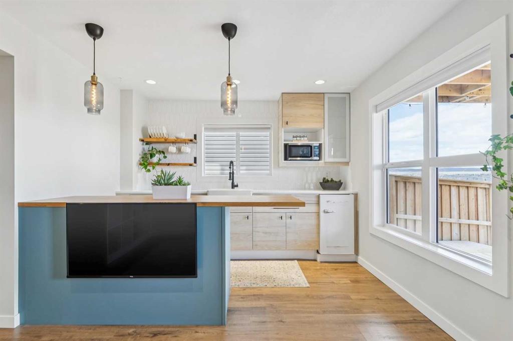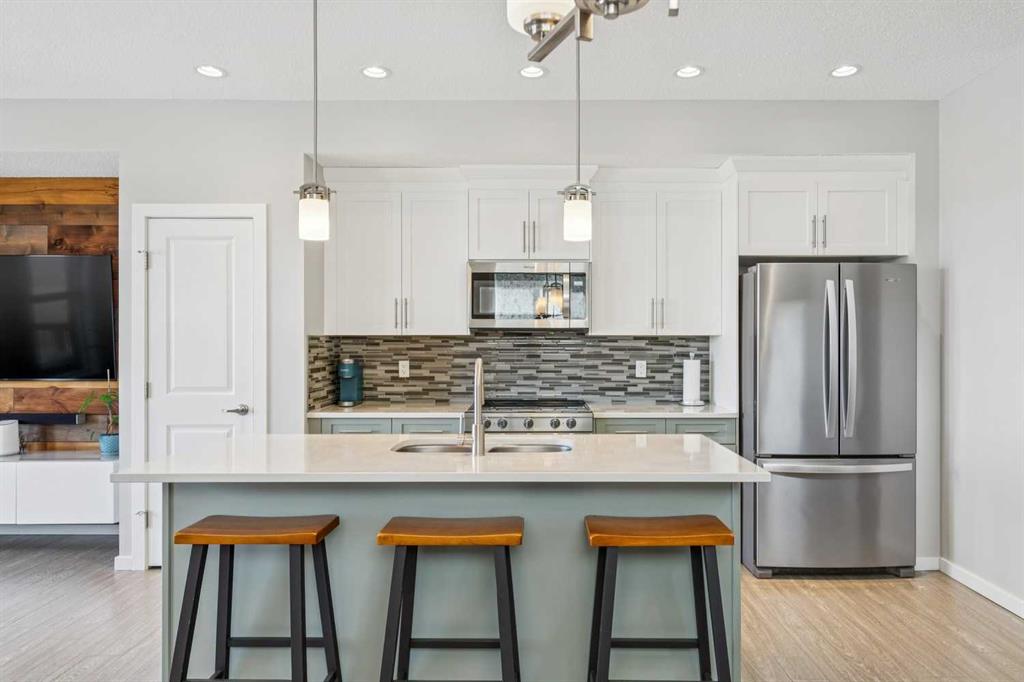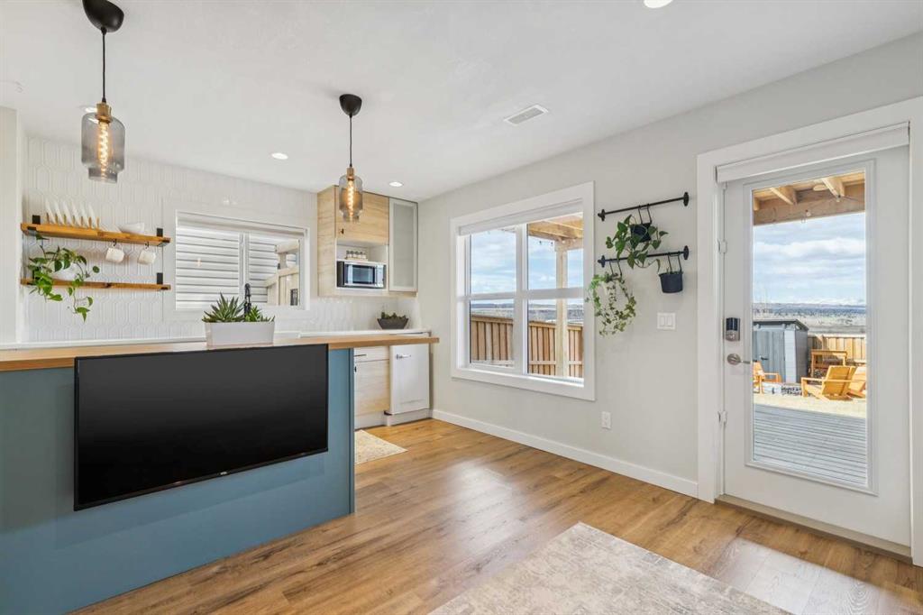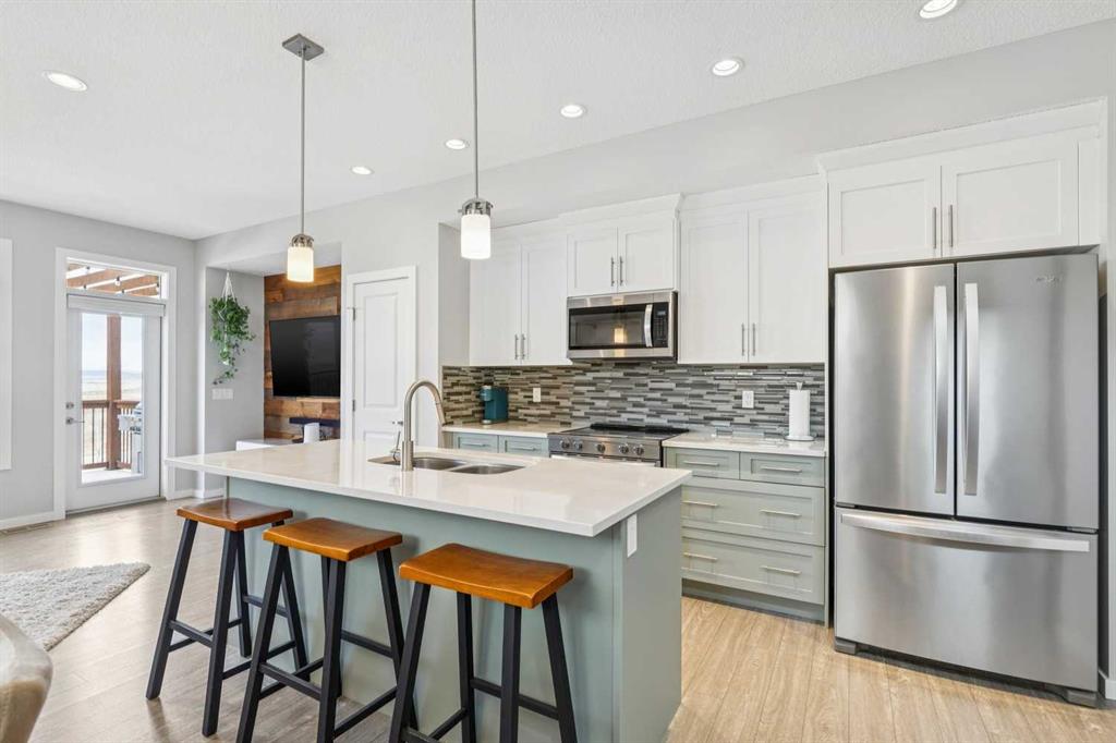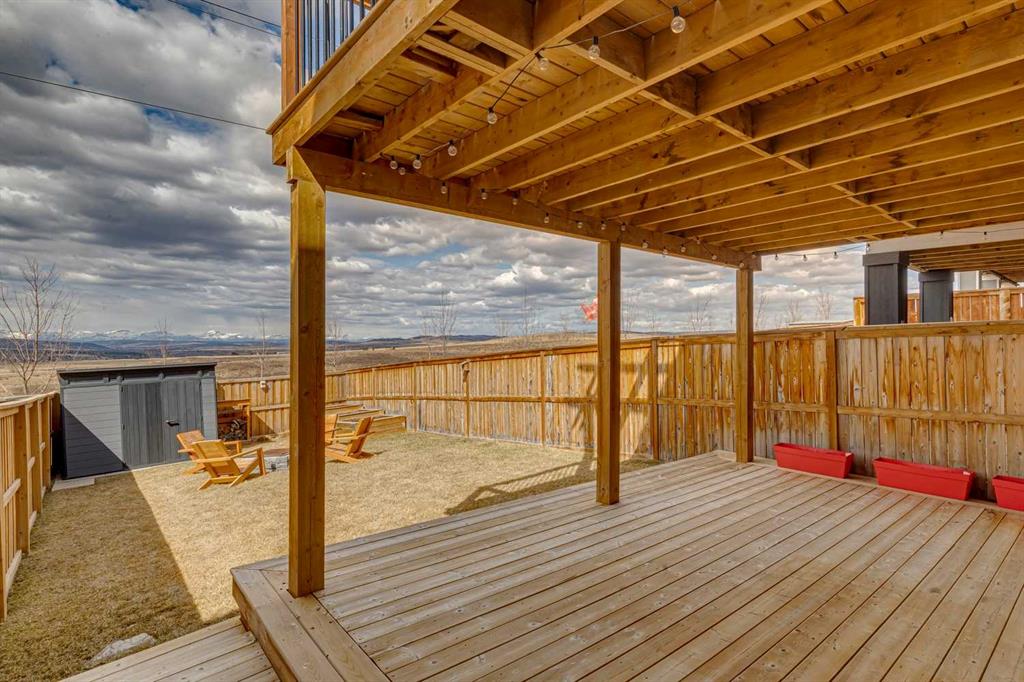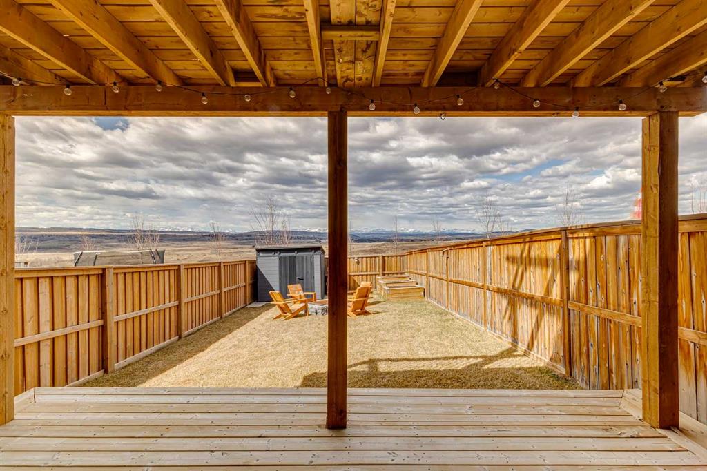 Here is a true rarity! Boasting some of the best views Southern Alberta has to offer from all three levels, and showing in like-new condition, this is the calming retreat every homeowner is looking for. Welcome to 99 Heritage Heights. Upon entry, this property immediately shows a cut above, with immaculate walls and luxury vinyl plank flooring flowing throughout the main floor living area. The incredible panoramic west exposure captures the mountain views this part of the world is known for. The kitchen features quartz countertops, gleaming white cabinetry, loads of storage space, and a dedicated pantry. The open-concept living and dining area extends onto the upper deck, expanding your main floor living and entertaining space. The upper deck has been thoughtfully expanded to approximately 18′ x 12′ and is structurally enhanced with helical piles, A 12′ x 12′ pergola with included LED string lighting creates the perfect setting for evening relaxation while taking in the sweeping mountain views. Upstairs, the primary suite (more mountain views) offers a walk-in closet and private ensuite bath. Two additional generously sized bedrooms, a 4-piece bath, and a dedicated laundry room complete the upper level. The finished walkout basement has been professionally updated and was previously operated as a very active Airbnb. Designer features are evident in the impressive bathroom, now further elevated with a premium Riobel thermostatic shower system with rain shower, elegant marble mosaic and porcelain tile work, and a NuHeat in-floor heating system with a programmable digital thermostat. Comfort and functionality are enhanced with an automatic humidity-sensing bathroom fan, creating a spa-like experience for guests or everyday use. The fully developed galley kitchen and sitting area create an ideal space for guests, extended family, or young adults in the home. The outdoor space continues to impress with an expanded lower deck measuring approximately 12.5′ x 22′. Thoughtful landscaping includes raised garden beds filled with organic compost and soil, cedar planter boxes in the front yard, and a 9′ x 7′ Keter “Artisan” shed for additional storage. Concrete steps, professionally poured run along the side of the home providing private and discreet access to the walkout basement. This walkout level also captures more mountain views and opens to a sunny west-facing backyard, perfect for warm summer evenings. The front attached garage is vaulted and offers excellent additional storage. Homes with views like this are typically found in the seven-figure range, you can own this property for a fraction of the price while still enjoying 100% of the location and views. Cochrane offers all the amenities you could want or need, with quick access to Banff, Canmore, and the national parks, while YYC is less than an hour away. Quick possession available book your private showing today!