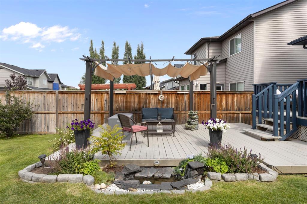 Welcome to 99 Sage Valley Park NW – a beautifully appointed residence where comfort, style, and community come together in one of Calgary’s most desirable neighbourhoods. With over 2,250 sq. ft. of thoughtfully developed living space, this family home offers an inviting first impression. Gleaming hardwood floors lead you through the open-concept main level, seamlessly connecting the living, dining, and kitchen areas. The bright kitchen features a spacious pantry, a breakfast bar accented with custom wainscotting, and an expansive dining space perfect for gathering with family and friends. The living room is warm and welcoming, centred around a cozy gas fireplace. A convenient powder room and main-floor laundry complete this level. Step outside and experience one of the home’s standout features: a generous 4,477 sq. ft. landscaped backyard. Enjoy summer evenings on the two-tiered deck complete with a BBQ gas line, relax under the pergola, and admire the established perennials, beautiful all season long with no annual planting required. Added trees provide both charm and privacy. Back inside, ascend the elegant staircase to your serene primary retreat, showcasing vaulted ceilings, large windows, a walk-in closet, and a luxurious 5-piece ensuite. Down the hall are two well-sized bedrooms and a 4-piece bathroom. A bright, open flex space at the top of the landing offers the perfect setting for a home office, craft area, or reading nook. The fully developed lower level features a fourth bedroom and an inviting entertainment space complete with a 65” TV and Bose sound system, also wired to the garage, ideal for movie nights or hosting guests at the built-in bar. A dedicated storage room and a rough-in for a future bathroom offer added convenience and value. Sage Valley is a community celebrated for its picturesque pathways, abundant green spaces, and family-friendly parks, perfect for evening walks, morning runs, or weekend adventures. You’ll appreciate being just minutes from Sage Hill Crossing and Creekside Shopping Centre, where cafés, restaurants, groceries, and everyday amenities are all within easy reach. Top-rated schools, nearby fitness facilities, and quick access to major routes ensure a lifestyle of ease and convenience. At 99 Sage Valley Park NW, you’re not just purchasing a home, you’re embracing a vibrant community you’ll be proud to be part of for years to come.