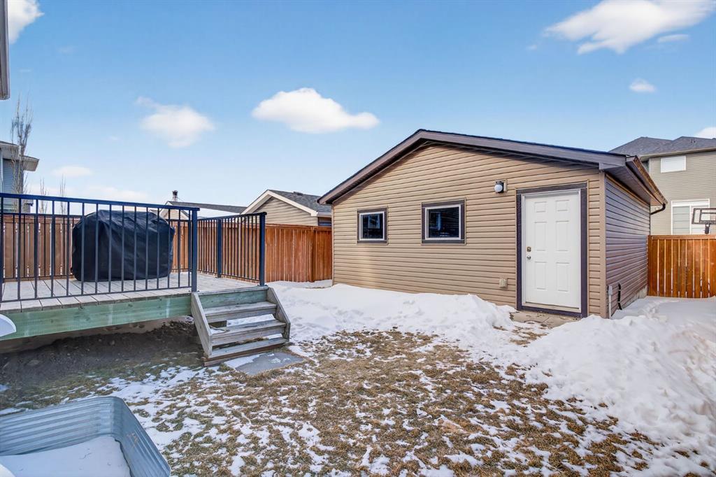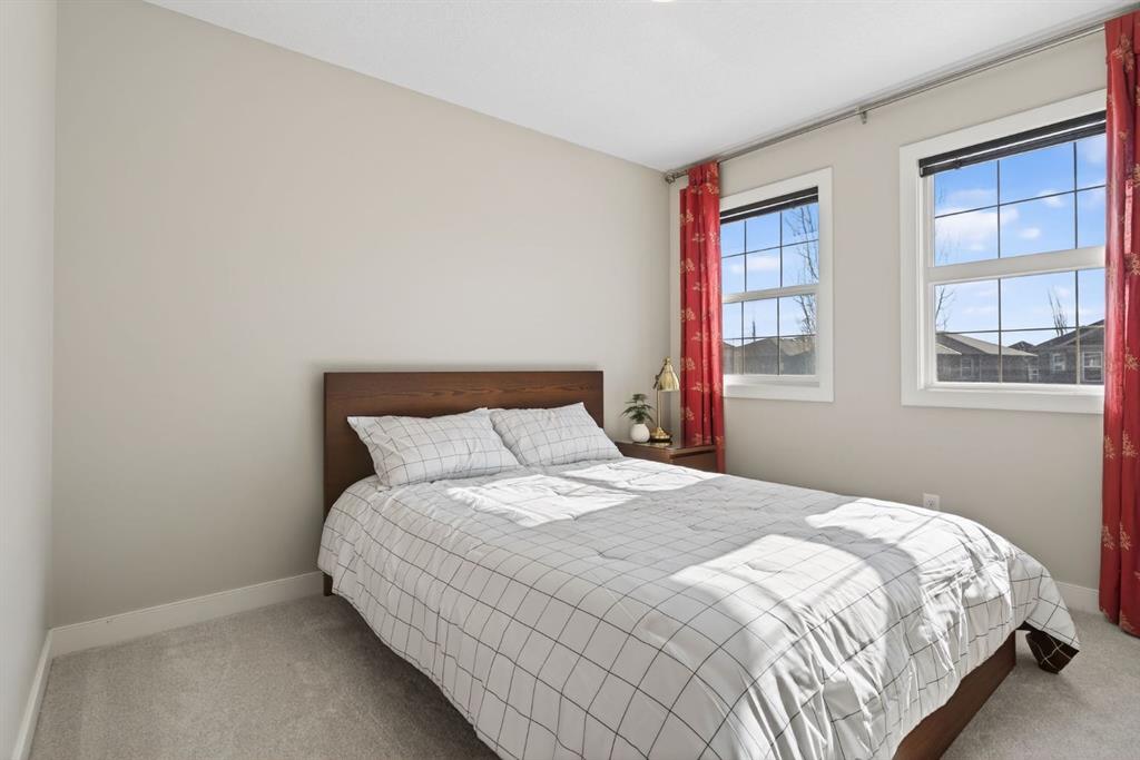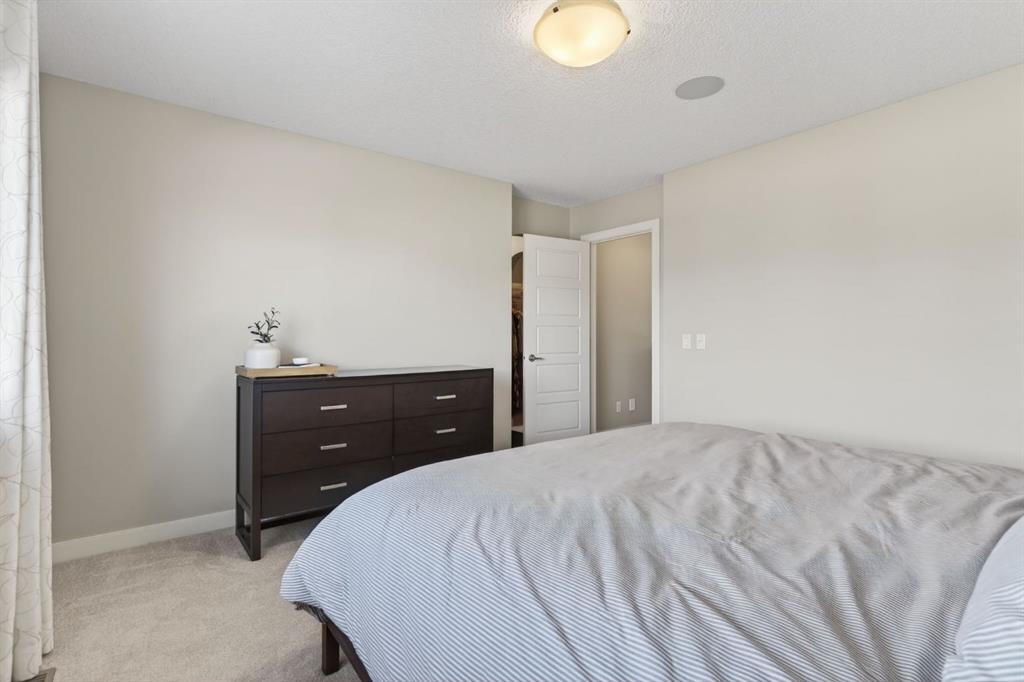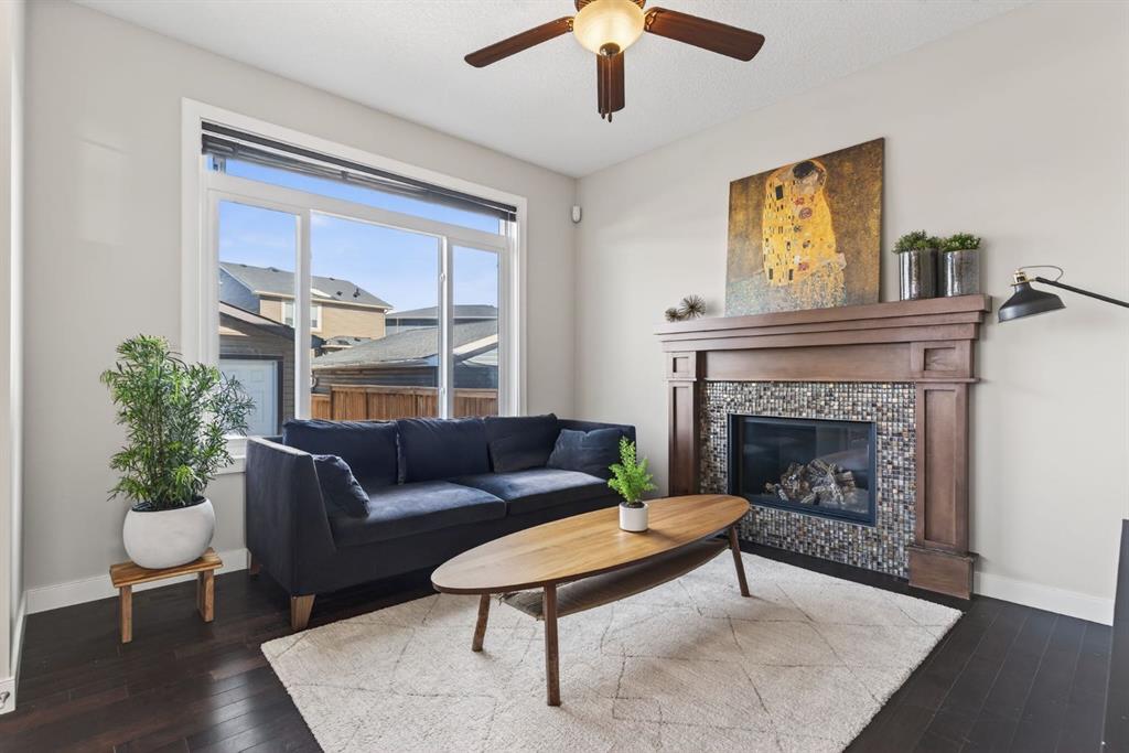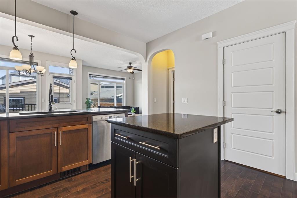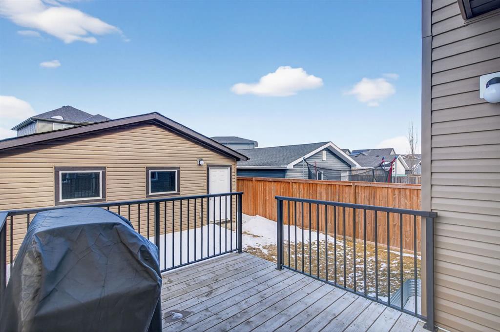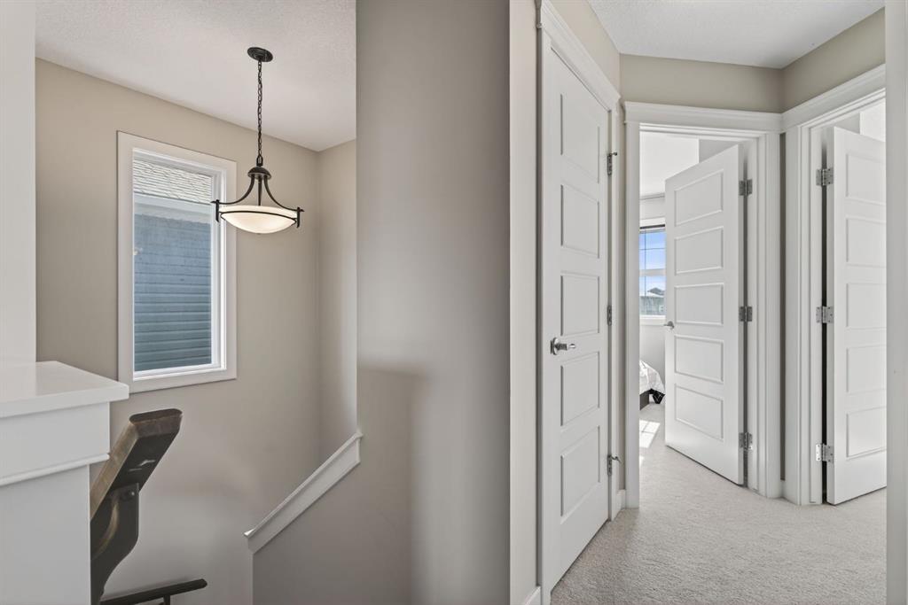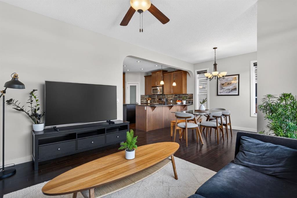 Welcome to this beautifully maintained former showhome in the heart of Evanston — offering timeless style, thoughtful upgrades, and over 2,300 sq ft of fully developed living space designed for both connection and comfort. Built in 2011, this 2-storey home stands out with its subtle midcentury modern influence, warm maple cabinetry, rounded architectural arches, and a layout that feels open yet intentional. The main floor seamlessly blends the kitchen, dining, and living spaces — creating an ideal environment for everyday living and effortless entertaining. The kitchen features granite countertops, stainless steel appliances, a central island, and a walk-in pantry, all anchored by rich cabinetry and classic finishes that feel elevated without feeling trendy. The adjacent living room is warm and inviting with a gas fireplace, while large windows fill the space with natural light. Upstairs, you’ll find three spacious bedrooms including a generous primary retreat complete with a 5-piece ensuite featuring a double vanity, soaking tub, separate shower, and walk-in closet. A full 4-piece bathroom and convenient upper laundry room complete this level — adding everyday functionality for busy households. The fully finished basement expands your living space with a large recreation and entertainment area, an additional bedroom, full bathroom, and a built-in wet bar — creating the ultimate movie night, game day, or hosting space. As a former showhome, this property is exceptionally well-appointed with air conditioning, built-in speakers throughout the top two floors, granite countertops, maple cabinetry, and carefully selected finishings throughout. Outside, enjoy a private fenced backyard and a detached oversized double garage with ample room for storage and larger vehicles — a rare and valuable feature. Located in the family-friendly community of Evanston, close to parks, schools, pathways, shopping, and major routes for easy commuting, this home offers the perfect blend of design, functionality, and lifestyle.