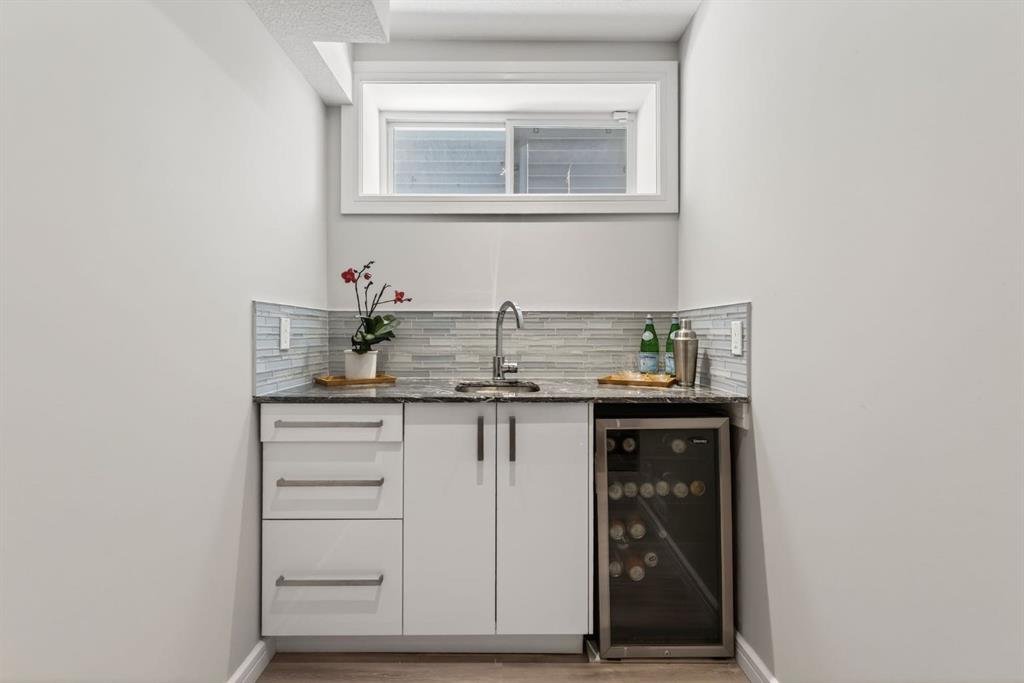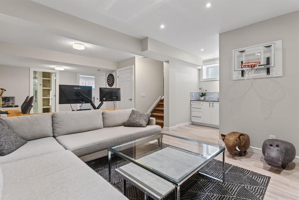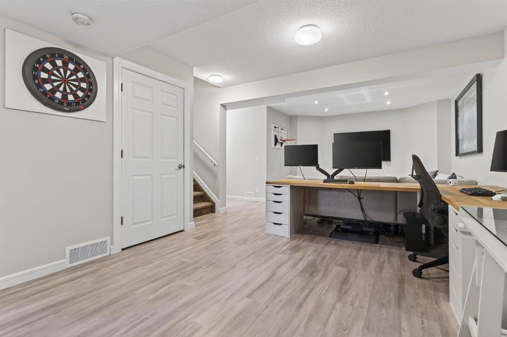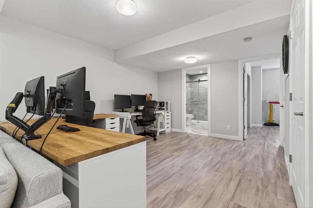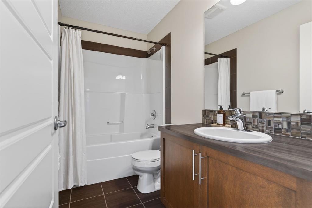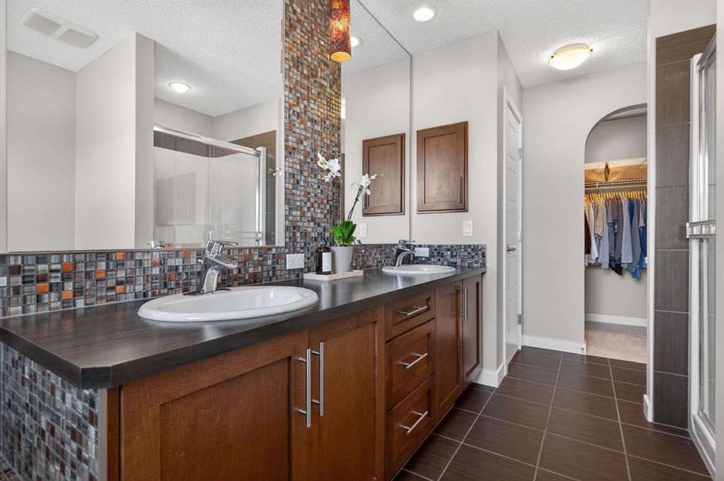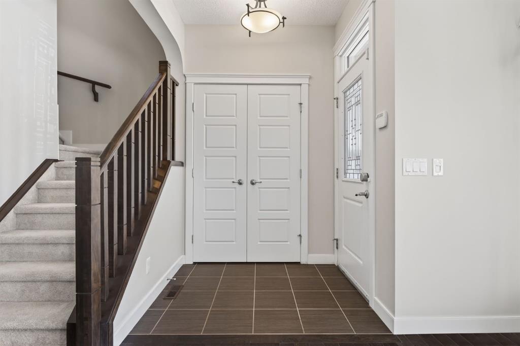 Welcome to this beautifully maintained former showhome in the heart of Evanston — offering timeless style, thoughtful upgrades, and over 2,300 sq ft of fully developed living space designed for both connection and comfort. Built in 2011, this 2-storey home stands out with its subtle midcentury modern influence, warm maple cabinetry, rounded architectural arches, and a layout that feels open yet intentional. The main floor seamlessly blends the kitchen, dining, and living spaces — creating an ideal environment for everyday living and effortless entertaining. The kitchen features granite countertops, stainless steel appliances, a central island, and a walk-in pantry, all anchored by rich cabinetry and classic finishes that feel elevated without feeling trendy. The adjacent living room is warm and inviting with a gas fireplace, while large windows fill the space with natural light. Upstairs, you’ll find three spacious bedrooms including a generous primary retreat complete with a 5-piece ensuite featuring a double vanity, soaking tub, separate shower, and walk-in closet. A full 4-piece bathroom and convenient upper laundry room complete this level — adding everyday functionality for busy households. The fully finished basement expands your living space with a large recreation and entertainment area, an additional bedroom, full bathroom, and a built-in wet bar — creating the ultimate movie night, game day, or hosting space. As a former showhome, this property is exceptionally well-appointed with air conditioning, built-in speakers throughout the top two floors, granite countertops, maple cabinetry, and carefully selected finishings throughout. Outside, enjoy a private fenced backyard and a detached oversized double garage with ample room for storage and larger vehicles — a rare and valuable feature. Located in the family-friendly community of Evanston, close to parks, schools, pathways, shopping, and major routes for easy commuting, this home offers the perfect blend of design, functionality, and lifestyle.