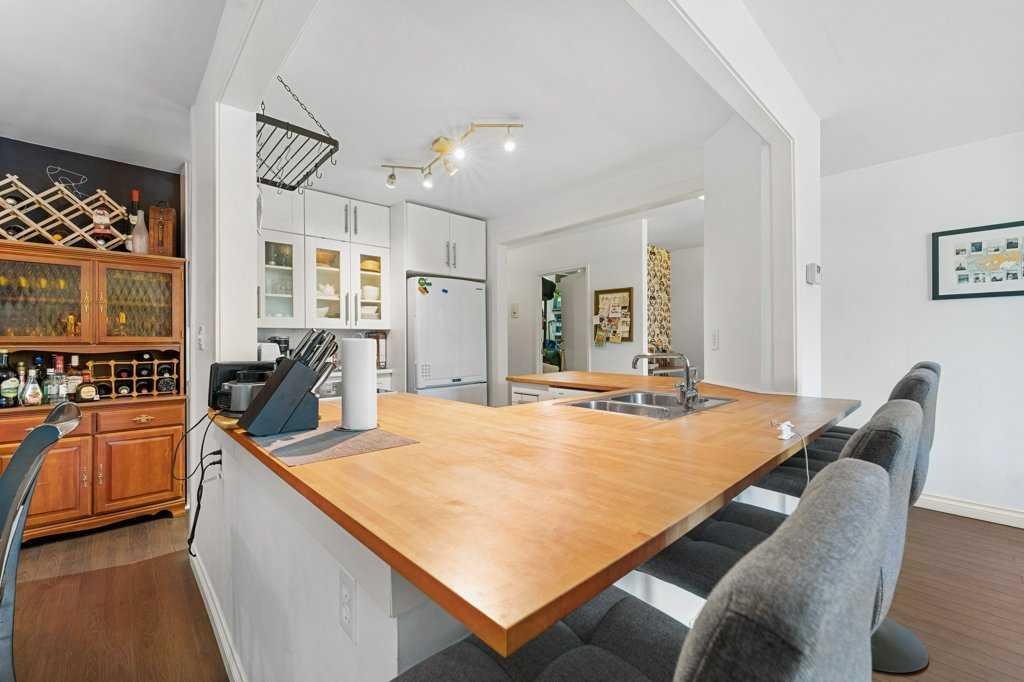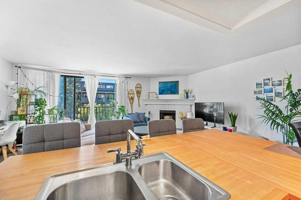 The superb layout of this condo ensures maximum space and functionality. The U-shaped chef’s kitchen, featuring stunning butcher block countertops, is absolutely wonderful. Adjacent to the kitchen is a dining area with custom lighting, ideal for entertaining guests.