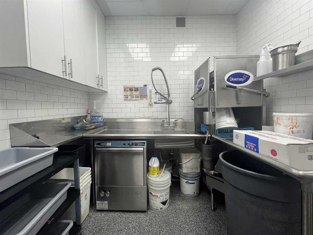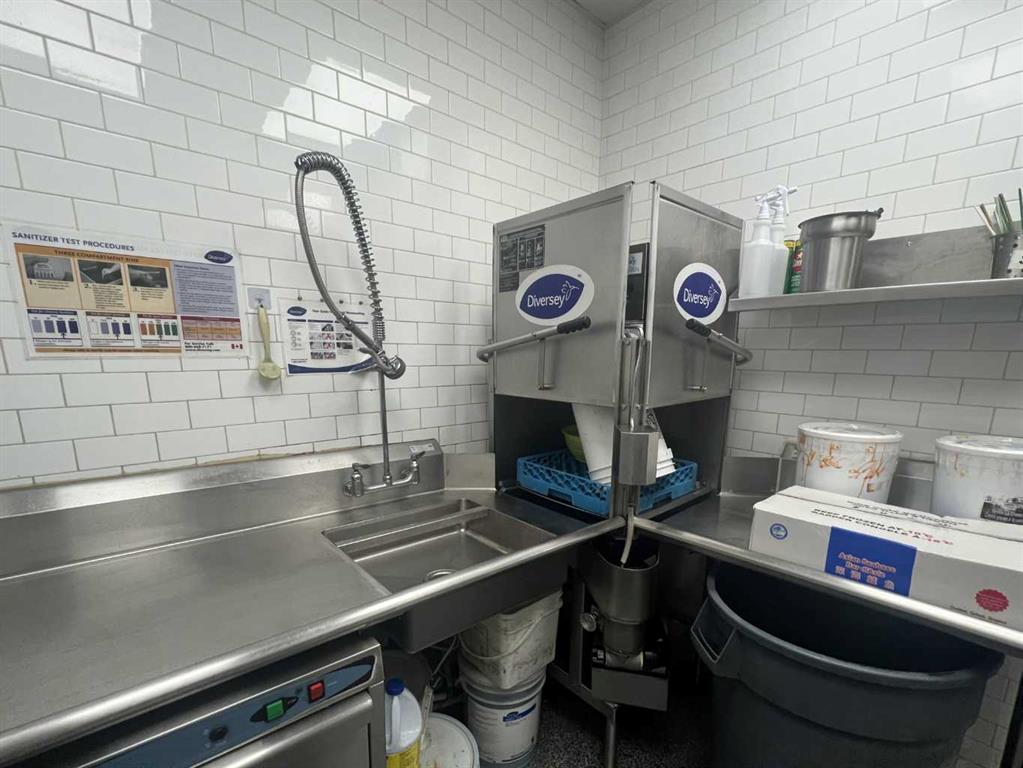 Well-equipped, fully built-out restaurant in a central location — ideal for a wide variety of cuisines including Chinese, Korean, Japanese, Italian, and more. Restaurant with full commercial kitchen: commercial canopy, gas grill, stock pot range, commercial wok range, deep frier, multiple freezers and cooler, multiple display coolers, commercial dishwasher, glasswasher, draft beer dispenser