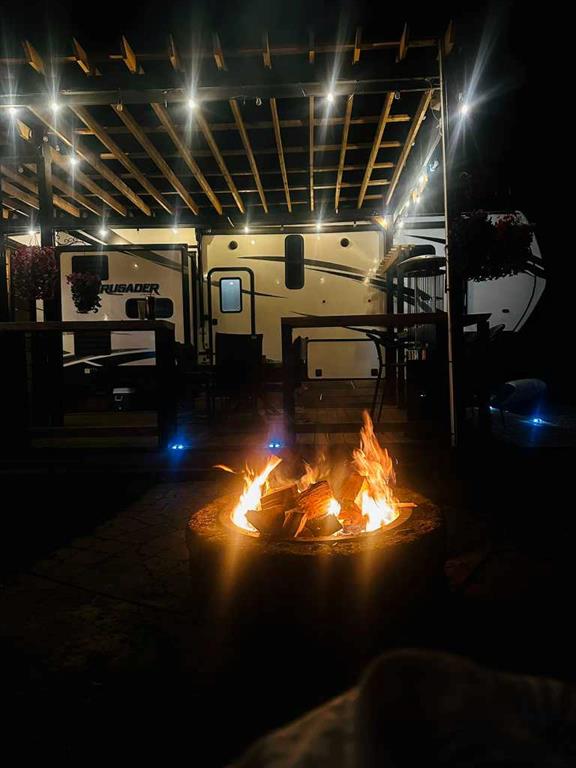 500lb Propane Tank, New Brick fire pit, with 14′ round layed brick seating area ,Beautiful 13ft high Pergola with Edison lights and water mist system for those hot summer days. Full Wrap Around Bar area with Chairs ,Full outdoor kitchen with covered mini pergola propane gas BBQ, Cook station and sink, bar fridge hooked up too 500lb tank ,7′ metal patio table with 6 chairs( 2 years old) Gorgeous landscaping, 50′ x 12′ Riverstone decorative rock with double underlay gravel driveway with golf cart parking pad, 360 degrees security system works with smart phone, Starlink satellite system $140/month (this can be negotiated ) Trailer Details: 2020 Primetime Crusader 395 BHL https://share.google/Oqkxq9swbbIPLMlOK 3 Slides, 2 powered awnings with led lights,1st owner, purchased in August 2020 New $99,000. Beautifully designed with island sink, lots of storage, panty.I