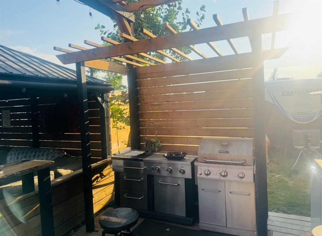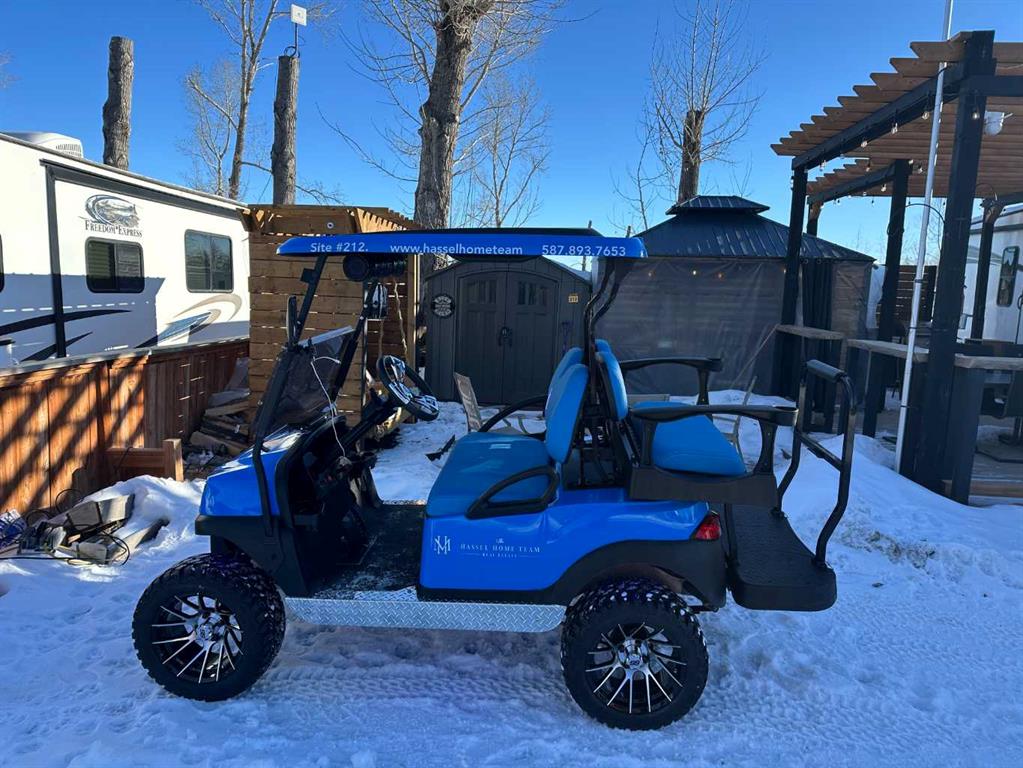 Lot: 212 on Dream Street Oasis Grove Golf & RV Resort, 25 minutes from Auburn Bay or Mahogany Range Rd 254, Wheatland County, AB including 39′ Prime Time Crusader and 50 x 50 lot with outdoor kitchen, Gazebo, 13′ Pergola, Shed and Custom Coffee/Wine Station