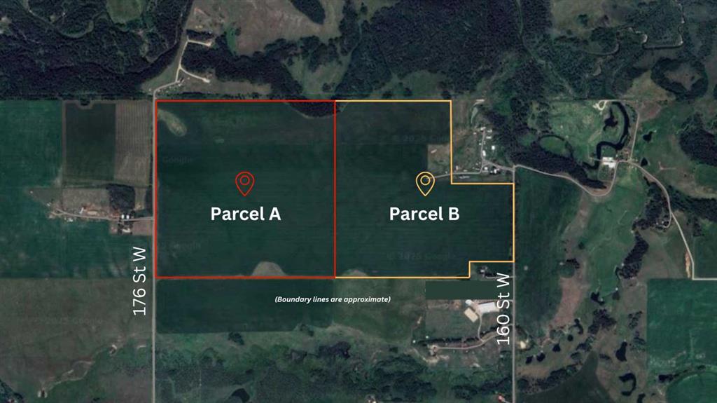WELCOME to a UNIQUE opportunity (LESS THAN A MILE FROM CALGARY CITY LIMITS!!!) to own 127.28 ACRES of PRIME Land just off 160 Street W (Straight NORTH of HIGHWAY 22X), brimming with POTENTIAL for development!!! Parcel B in the cover photo is the parcel listed here. Whether you’re looking to develop, conserve, or diversify, this SUBSTANTIAL TRACT offers REMARKABLE FLEXIBILITY to bring your VISION to life!!! Diverse terrain for future zoning, utility setups, or land use adjustments. Ideal for Agriculture, Recreation, or long-term APPRECIATION; this Land can adapt to your needs while remaining a VALUABLE ASSET. Just a short drive WEST of CALGARY, this property contains SERENE NATURAL BEAUTY w/CONVENIENCE of nearby city access, making it an EXCEPTIONAL opportunity for those seeking a VERSATILE development potential in a DESIRABLE location. EASY ACCESSIBLE via PAVED roads leading directly to the property. There are 3 ROBUST water wells, each delivering 10 gallons per minute (GPM), ENSURING a RELIABLE water supply. The GENTLY rolling terrain with SCENIC VIEWS of the nearby MOUNTAINS adds SIGNIFICANT appeal to any future development plans. ENJOY the PANORAMIC VIEWS, creating an ideal setting for RESIDENTIAL, RETREAT SPACES, or even RECREATIONAL uses. It can be PERFECT for future subdivisions or COUNTRY ESTATE potential. With the 3 STRONG water wells in place, + PAVED road access, the land is PRIMED for various uses, whether Residential, Agricultural, or Eco-Friendly Tourism. This is an unparalleled combination of SOUGHT-AFTER Mountain Views, Proximity to Calgary, + Robust water access, making it a RARE GEM for anyone looking to own a SIGNIFICANT piece of ALBERTA’S PRIME land. The Parcel adjacent to this one is also for sale by the same owner. Don’t miss out on the chance to SHAPE this land into your DREAM!!!