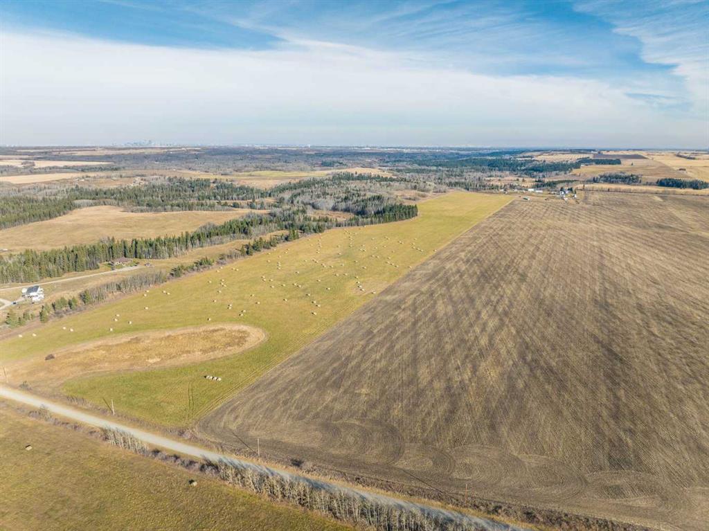 WELCOME to a UNIQUE opportunity to own 158.74 ACRES of un-subdivided, PRIME Land just off 176 Street W (Straight NORTH of HIGHWAY 22X – LESS THAN A MILE FROM CALGARY CITY LIMITS!!), brimming with POTENTIAL for development. Parcel A in the cover photo is the parcel listed here. Whether you’re looking to develop, conserve, or diversify, this SUBSTANTIAL TRACT offers REMARKABLE FLEXIBILITY to bring your VISION to life!! Diverse terrain for future zoning, utility setups, or land use adjustments. Ideal for Agriculture, Recreation, or long-term APPRECIATION; this Land can adapt to your needs while remaining a VALUABLE ASSET. Just a short drive WEST of CALGARY this property contains SERENE NATURAL BEAUTY w/CONVENIENCE of nearby city access making it an EXCEPTIONAL opportunity for those seeking a VERSATILE development potential in a DESIRABLE location. EASY ACCESSIBLE via PAVED roads leading directly to the property. There are 3 ROBUST water wells, each delivering 10 gallons per minute (GPM), ENSURING a RELIABLE water supply. The GENTLY rolling terrain with SCENIC VIEWS of the nearby MOUNTAINS, adds SIGNIFICANT appeal to any future development plans. ENJOY the PANORAMIC VIEWS creating an ideal setting for RESIDENTIAL, RETREAT SPACES, or even RECREATIONAL uses. It can be PERFECT for future subdivisions or COUNTRY ESTATE potential. With the 3 STRONG water wells in place, + PAVED road access, the land is PRIMED for various uses, whether Residential, Agricultural, or Eco-Friendly Tourism. This is an unparalleled combination of SOUGHT-AFTER Mountain Views, Proximity to Calgary, + Robust water access, making it a RARE GEM for anyone looking to own a SIGNIFICANT piece of ALBERTA’S PRIME land. The Parcel adjacent to this one is also for sale by the same owner. Don’t miss out on the chance to SHAPE this land into your DREAM!!