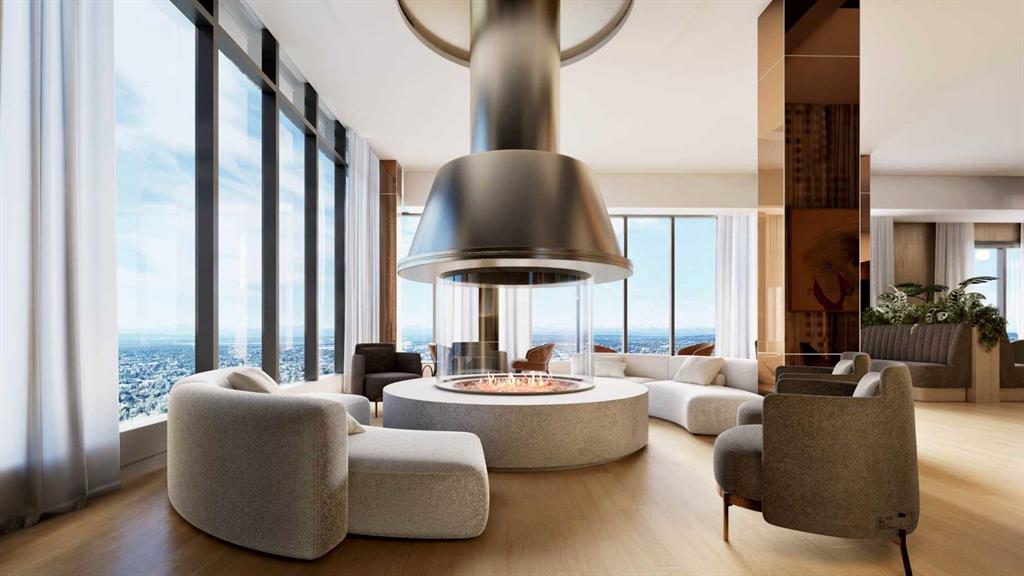 Take in breathtaking views from the exclusive Level 46 Fireside Sky Lounge, featuring a bar, indoor fireplace, and private dining areas overlooking downtown Calgary and the Rocky Mountains.