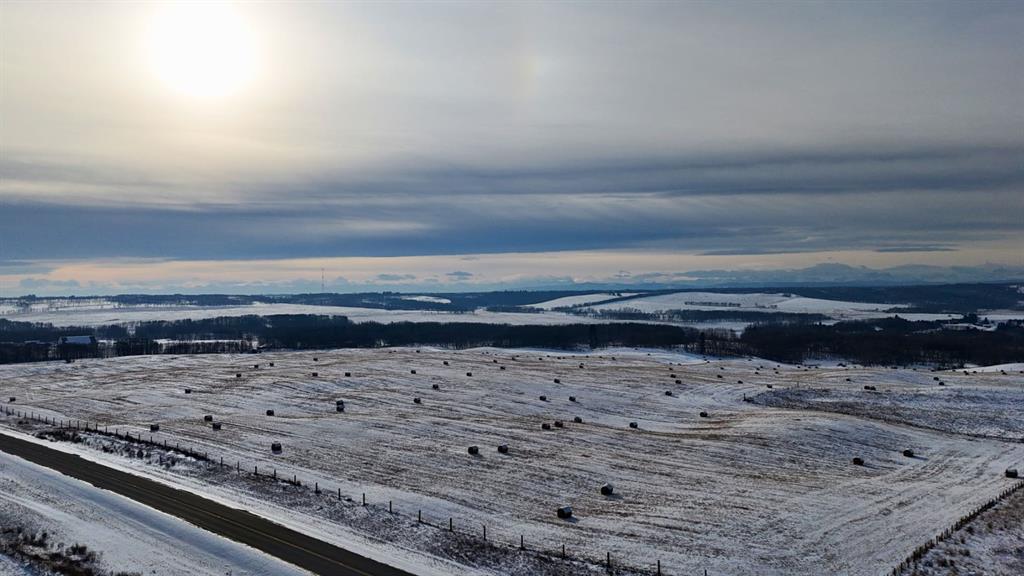 An expansive 138.6-acre parcel of agricultural land sits just north of Westbrook School in Rural Rocky View County, offering a rare opportunity to secure significant acreage with a mix of cultivated fields, mature trees, and stunning mountain vistas.